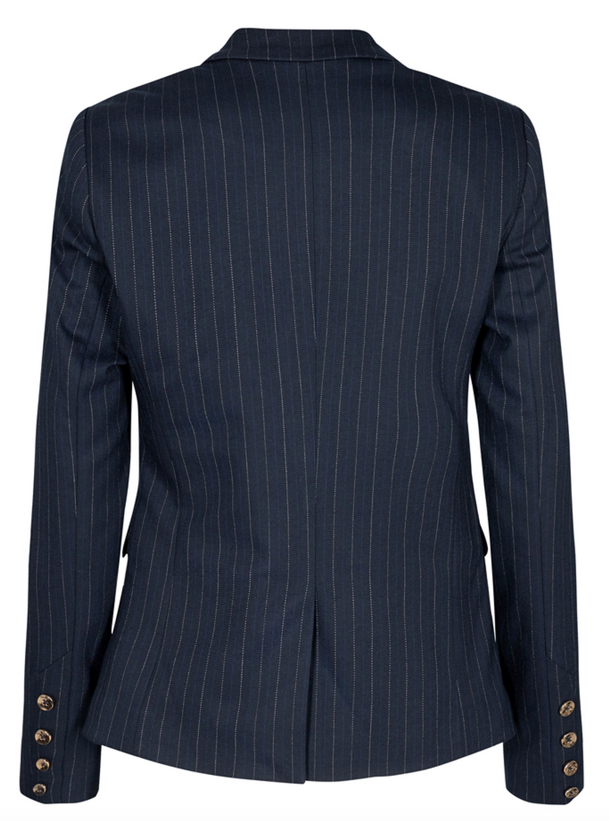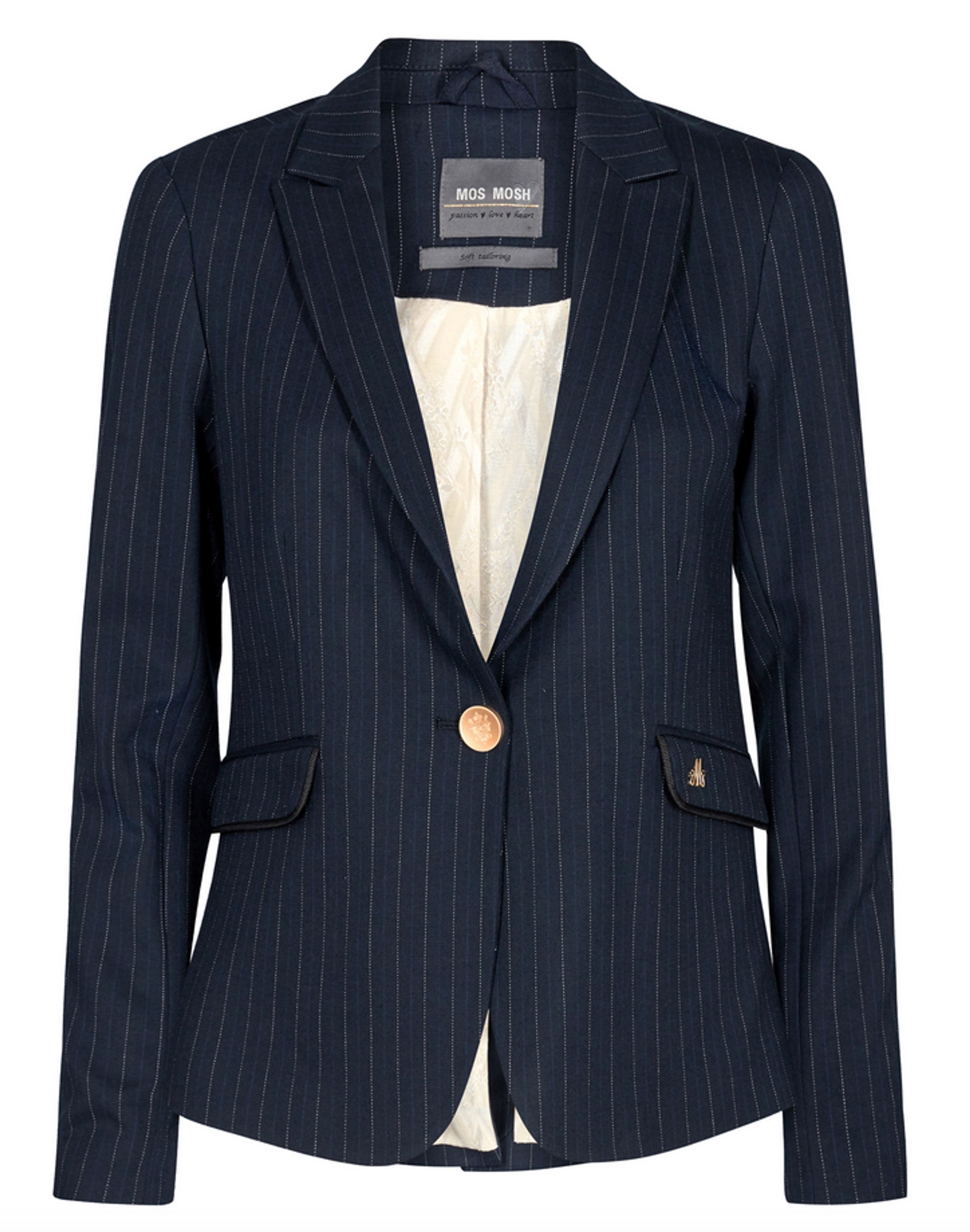 Nice blazer with classic pinstripes from the Danish brand Mos Mosh. The model is made in the popular Blake model, is lined inside and has a regular length that is neither too long nor too short. Style with the pants of the same quality to create a set, or use it with a pair of raw jeans or classic pants, where it can give a feminine finish.