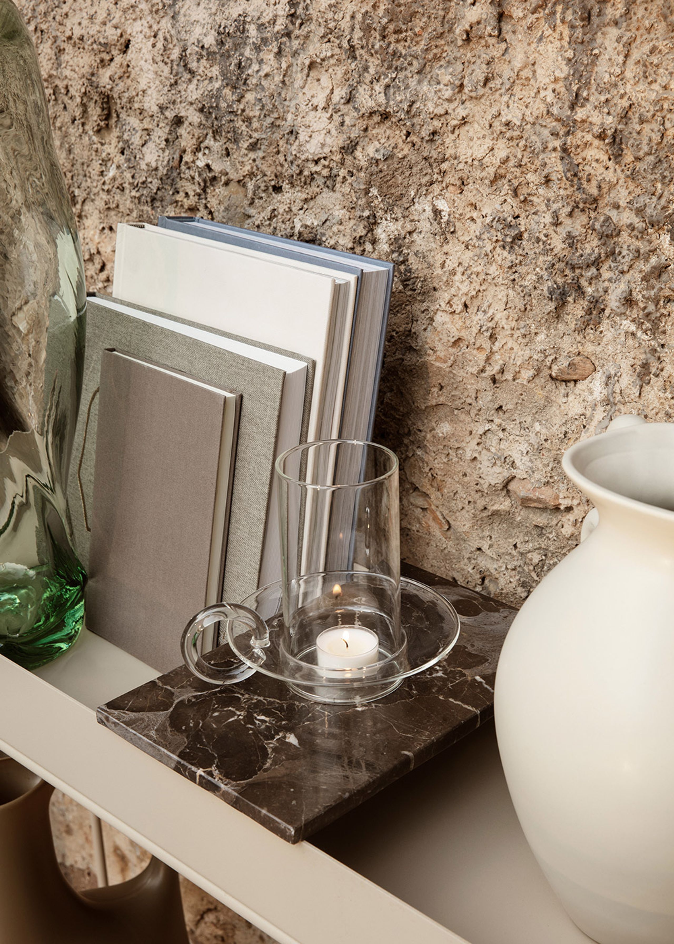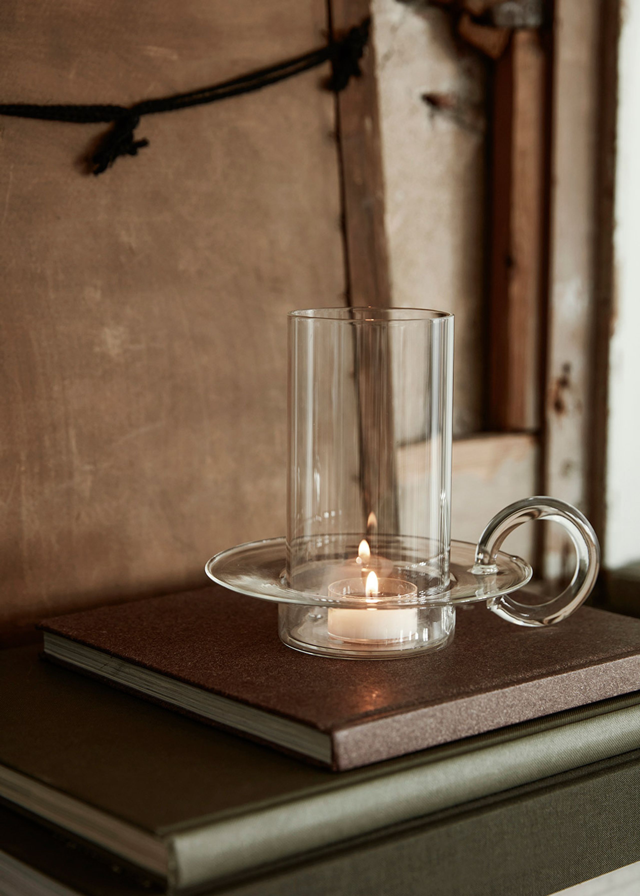 Svícen Luce od společnosti Ferm Living má elegantní design, který čerpá inspiraci z tvaru starožitných svícnů, ale je vyroben z moderních materiálů, které dávají svícnu zcela nový výraz. Čiré sklo krásně reprodukuje a kopíruje světlo plamene, přičemž vysoký okraj válce pomáhá chránit světlo před větrem.