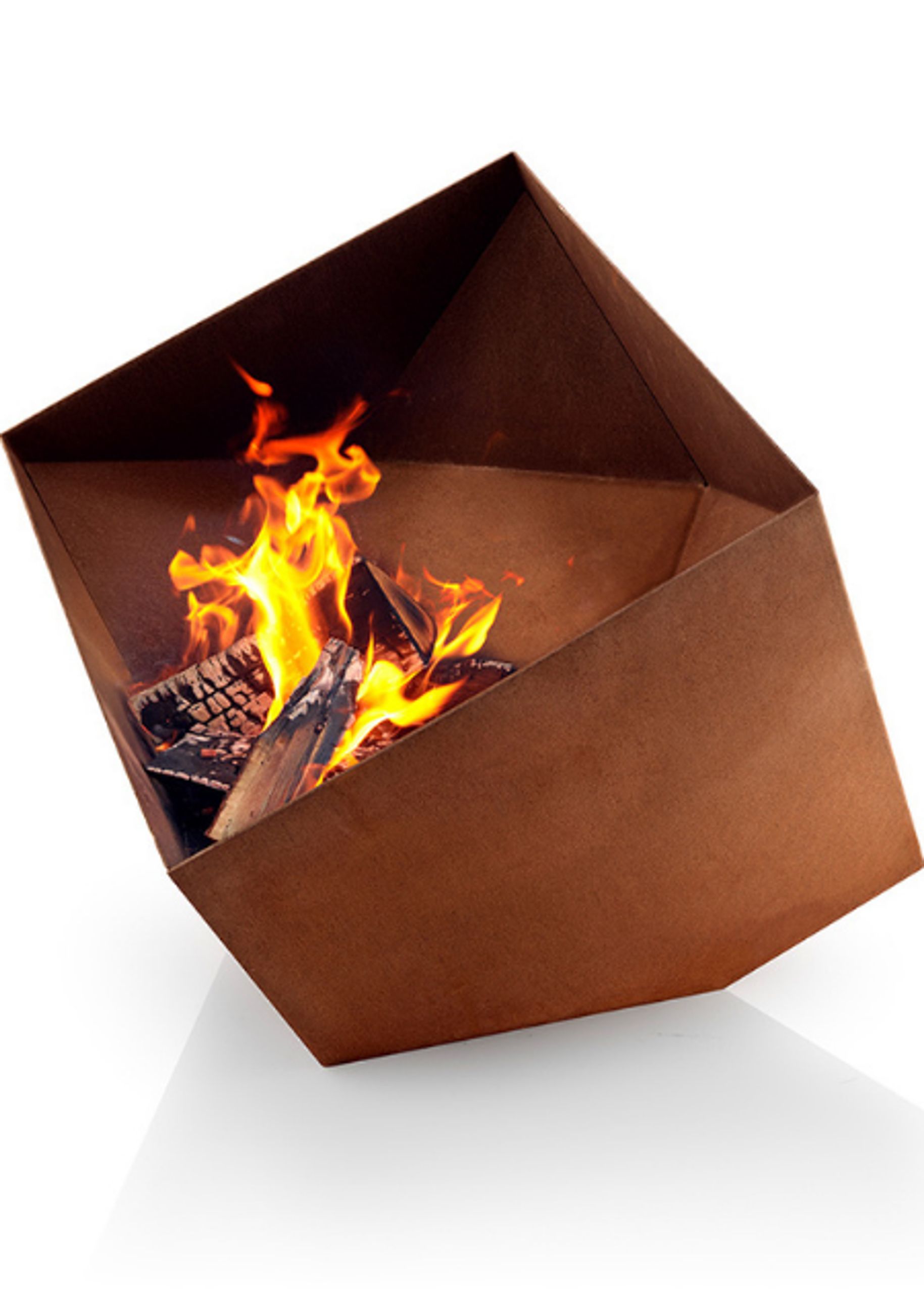 Krásný krb FireCube má sochařský a rustikální vzhled z cortenové oceli. Kostku lze naklonit i otočit. Můžete si vybrat stranu, proti které vítr přichází. Ohniště Firecube můžete nechat venku po celý rok.