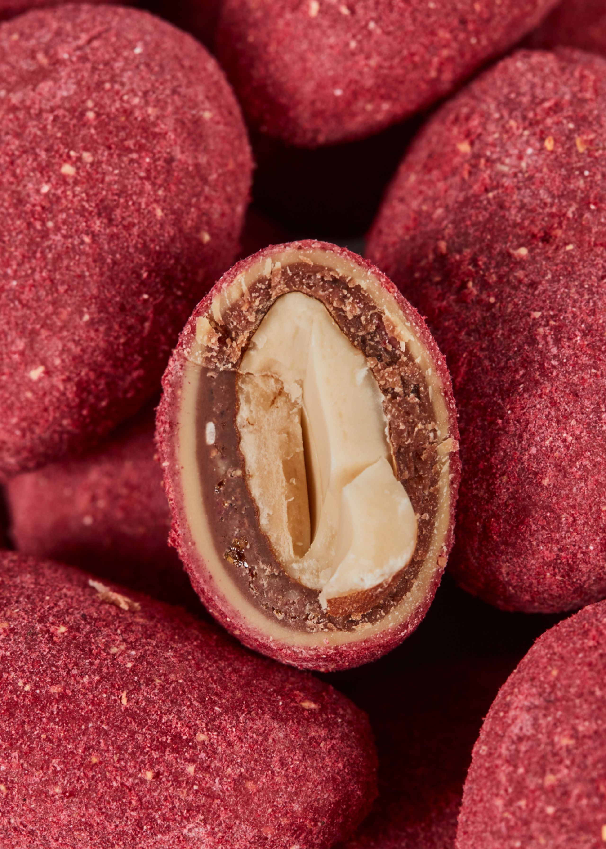V kuchyni je Raspberry Red ideálním požitkem pro chvíle čistého potěšení nebo jako promyšlený doplněk elegantního dezertu. Můžete je kombinovat se sklenkou vychlazeného šampaňského, které zvýrazní ovocné tóny, nebo je podávat k dekadentnímu sýrovému prkénku, kde jejich jemná sladkost doplní bohaté krémové sýry. Ať už si je vychutnáte samostatně, nebo jako součást bohaté pomazánky, tyto mandle dodají noblesu každé příležitosti.
