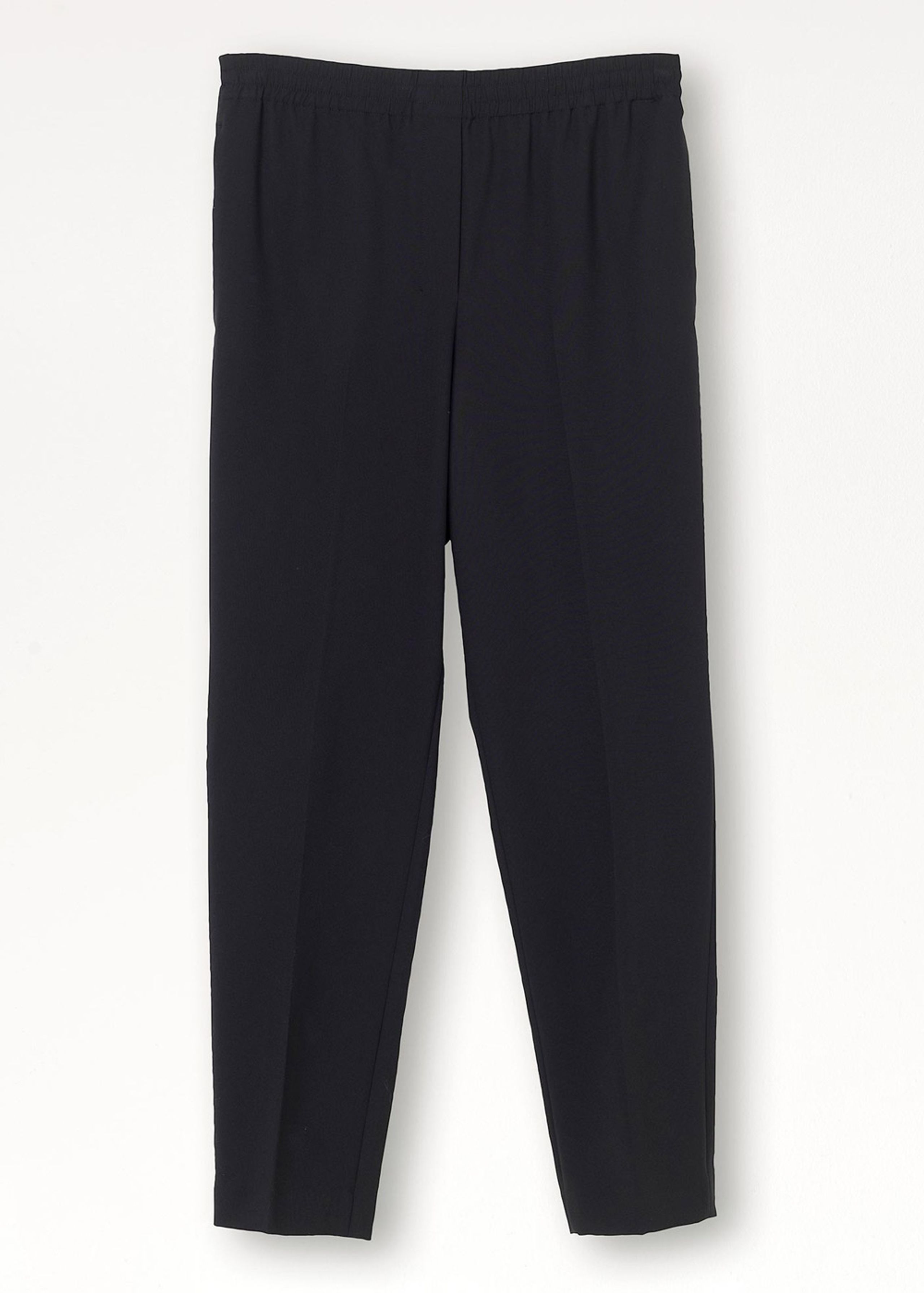 Fine cropped bukser i skøn pasform med stretch og elastikbånd i taljen fra Malene Birger. Bukserne har to sidelommer og mid-rise-detalje.