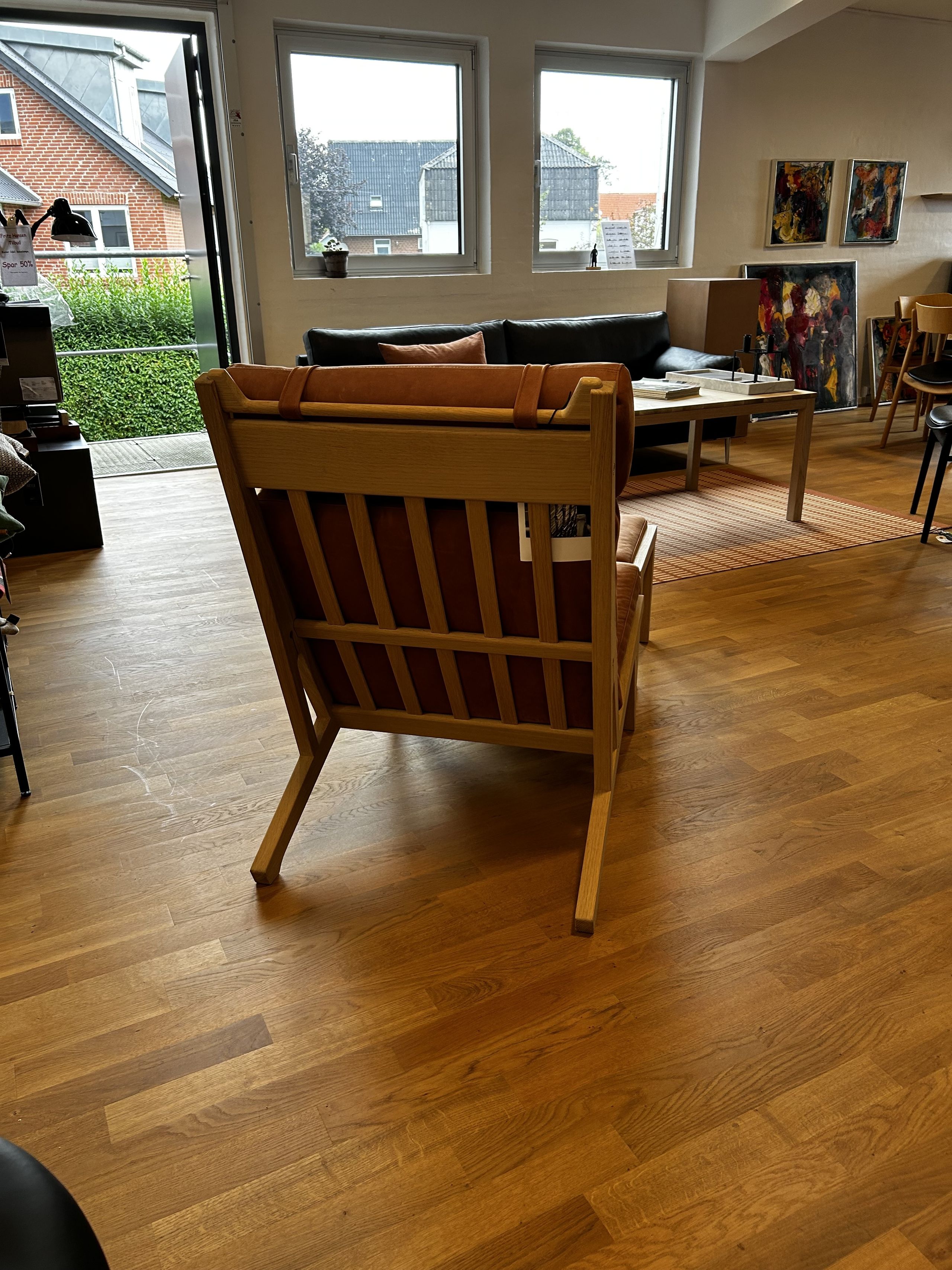 Lænestol fra GetamaGE375 Høj stol uden arm m. fodskammel / af Hans J. Wegner - Udstillingsmodel