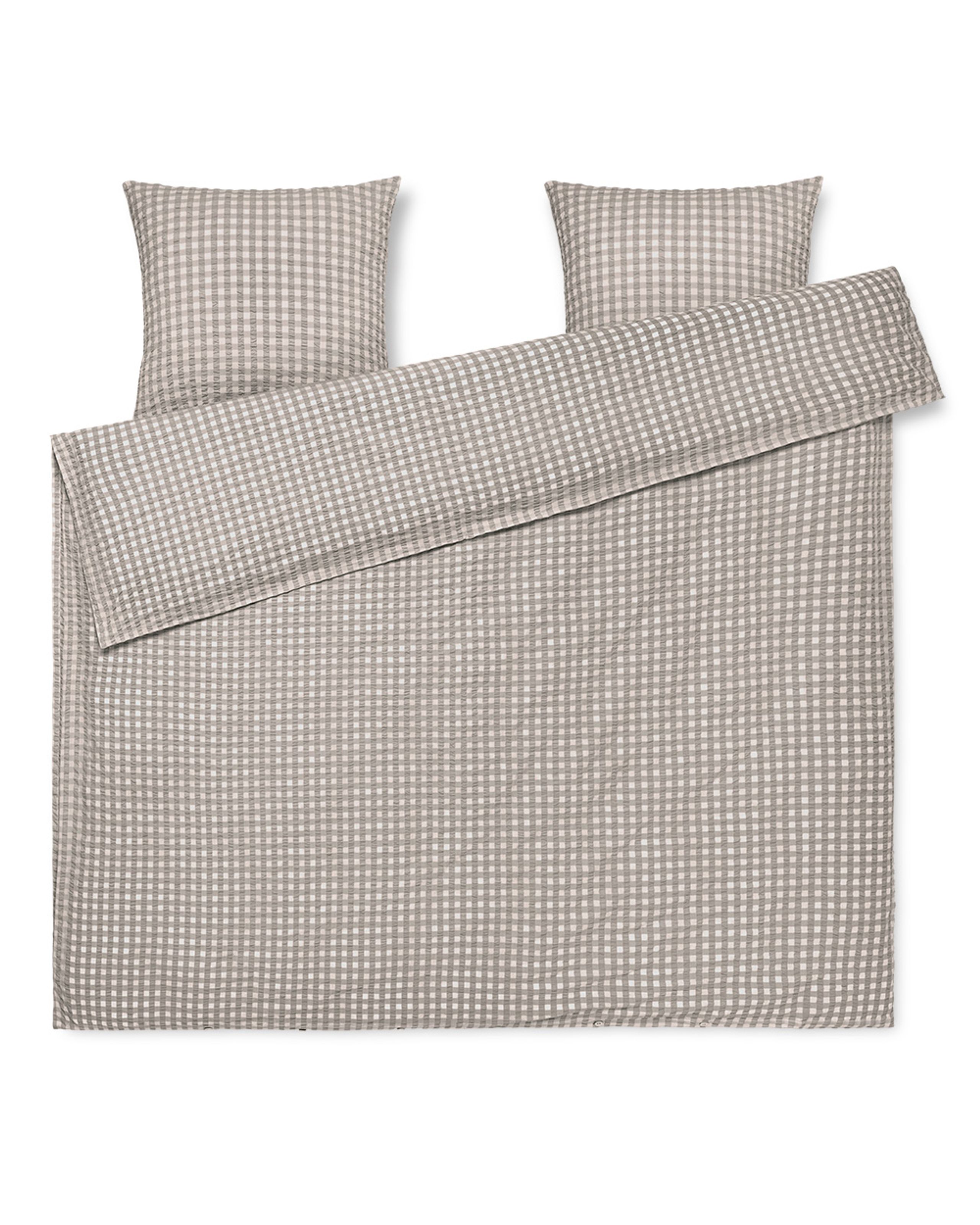- Specifikationer: Vask ved 60° C, tørretubel ved middel varme, stryfrit, pudebetrækket lukkes med kuvertlukning, mens dynebetrækket lukkes med knaplukning, fås både med dobbeltdyne og ej.
