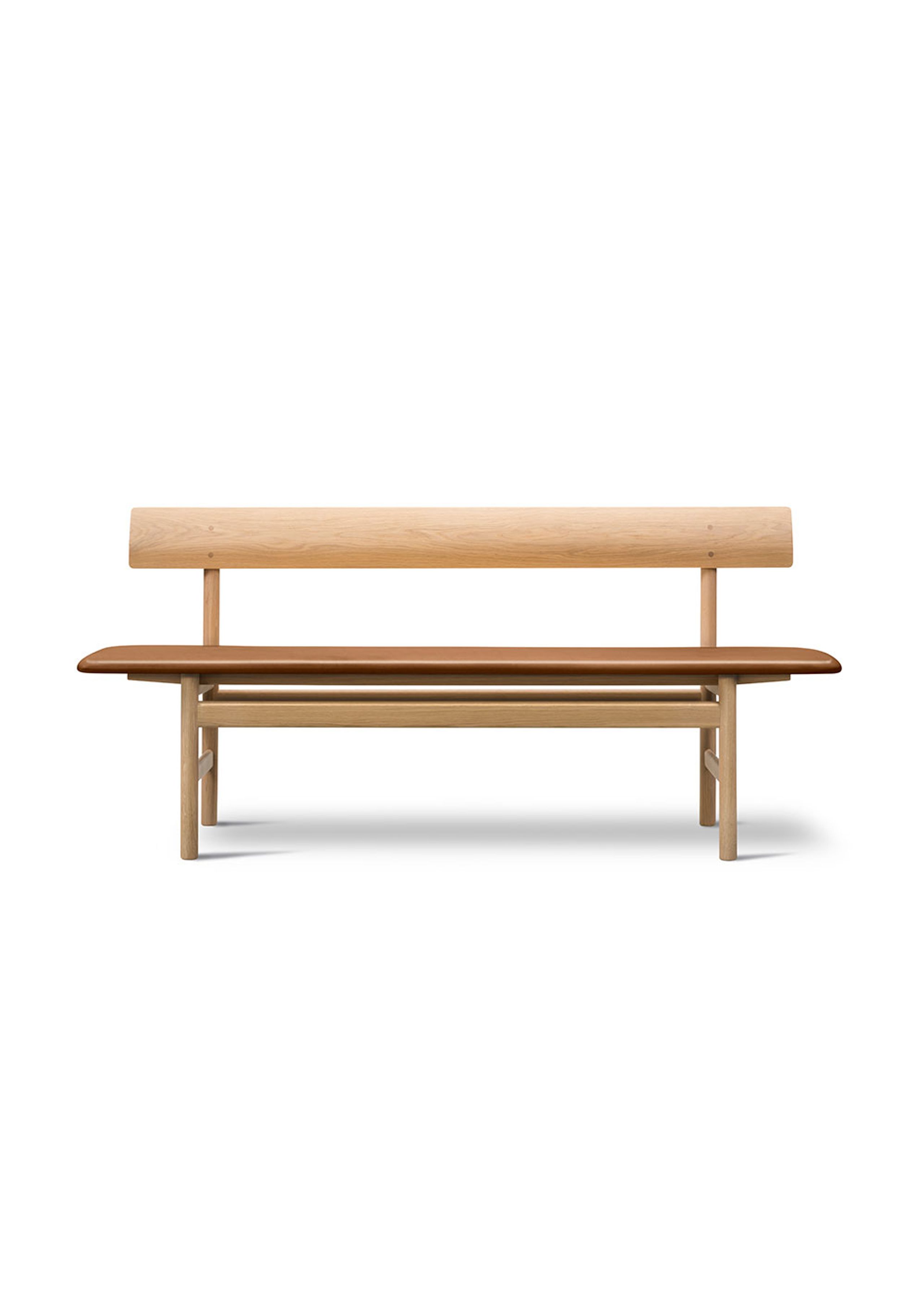 'Mogensen' bænken, designet af Børge Mogensen tilbage i 1956, har et klassisk design der komplimentere den ikoniske J39 stol og navnesøsteren 'Mogensen' spisestolen. Ligesom stolene, besidder bænken en alsidighed der både går på tværs af indretninger og generationer. Bænkens materialer er valgt med omhu, for at skabe et design der ældes med ynde og holder gennem flere årtier, uden at gå af mode eller tabe sit smukke udtryk. Med et stel udført i solide trætyper, smukke lakeringer og synlige samlinger, viser Fredericia Furniture at de formår af genskabe det fantastiske snedkerhåndværk, der giver en autentisk følelse. Sædet er udført i luksuriøse lædertyper i smukke naturlige farver, der komplimentere det solide træ og tilføjer en ekstra dimension af komfort.
