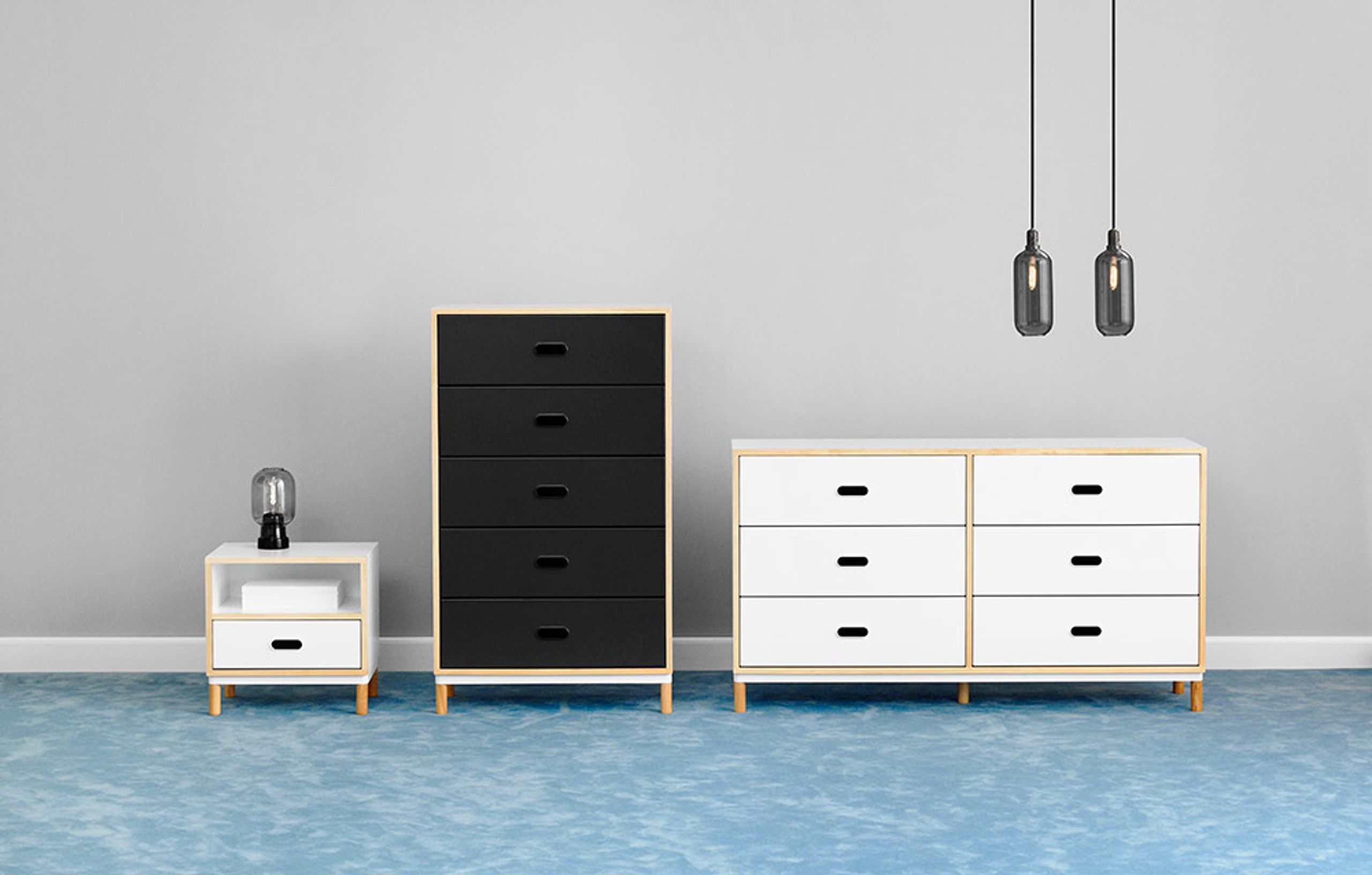 Kabino Dresser er en enkel kommode lavet af Normann Copenhagen. Kommoden er lavet af MDF, stål, aluminium og ask og rengøres med en fugtig klud. Kabino har et industriel udtryk og et minimalistisk formsprog. Kabino møblerne passer ind i alle rum i hjemmet.