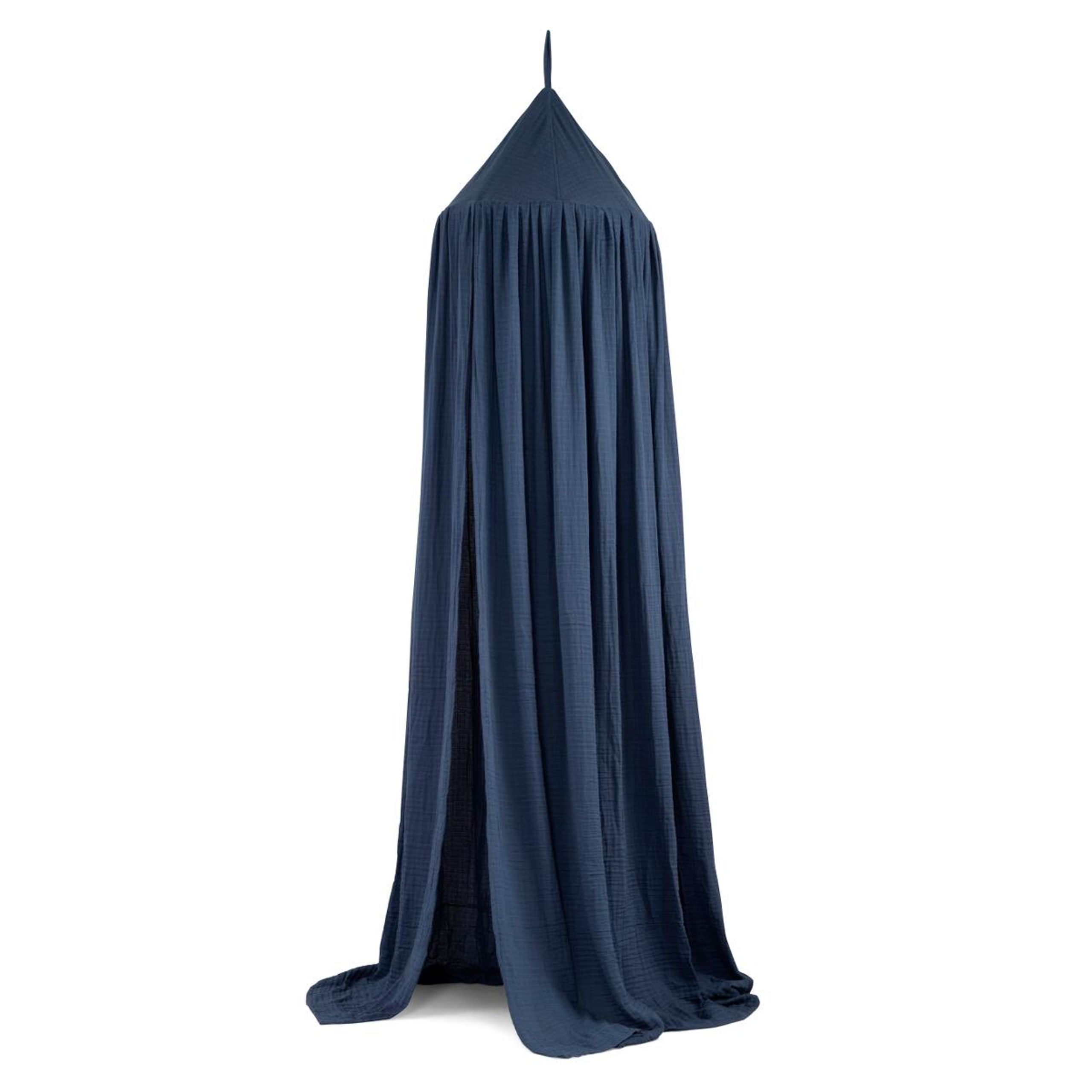 Smuk sengehimmel fra Sebra. Den er perfekt over sengen, men kan også sagtens placeres i et hyggehjørne. Det elegante stof er monteret på en metalbøjle, hvorpå der eksempelvis kan hænges en uro eller drømmefanger. Sengehimlen er designet med en strop i toppen som gør det nemt at hænge den op i en krog fra loftet. Stoffet kan tages af metalbøjlen og vaskes. Brug sengehimlen med omtanke og tjek jævnligt at den er sikkert monteret.