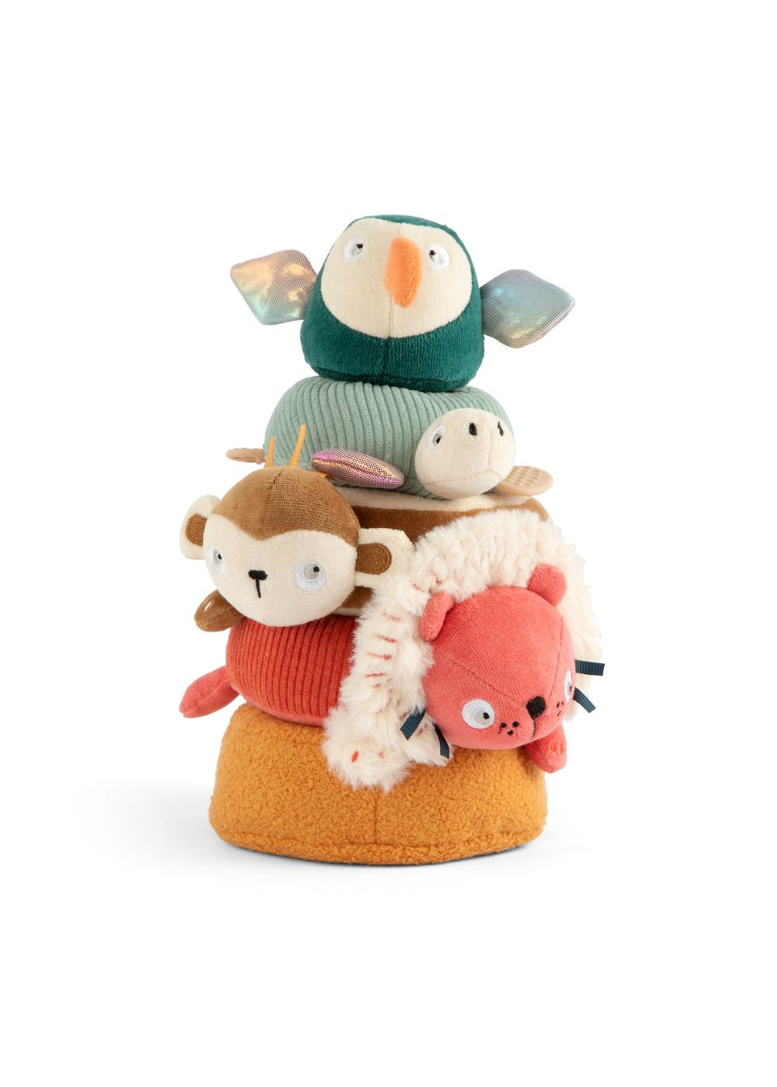 Stacking Toy fra Sebra er et stabeltårn af søde dyr, der lægger op til timevis af leg. skil dem fra hinanden og leg med dem enkeltvis eller byg et tårn af de fine figurer. Tukanen Tully kan bruges som rangle og løven Lee som spejl. Stabellegetøjet styrker mange færdigheder som følesansen, synssansen, høresansen og grov og fin motorik.