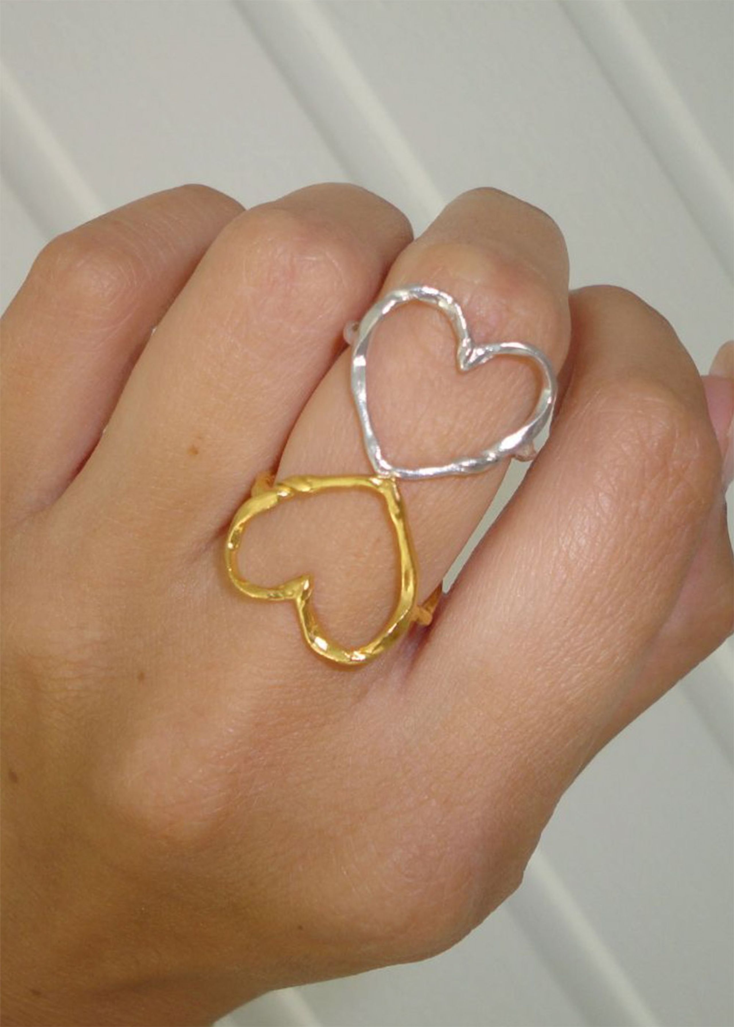 Elegant hjertering fra Stine A. Ringen har en banket overflade med snoede detaljer.