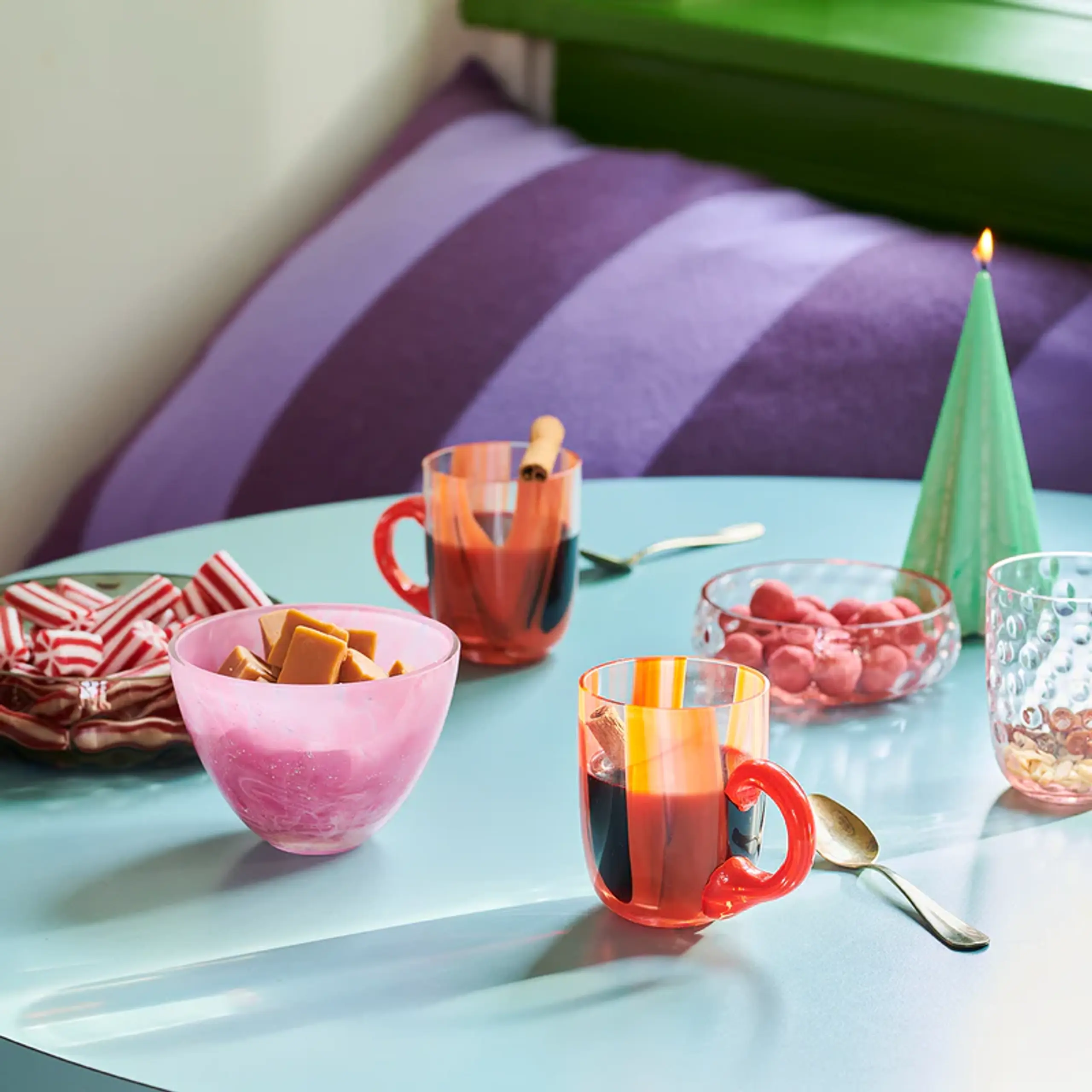Bringen Sie einen Hauch von einzigartiger Kunst und Funktionalität mit der Flow Mug. Dieser Kaffeebecher zeichnet sich durch seine charakteristischen Streifen auf klarem, mundgeblasenem Glas aus und bietet eine Mischung aus traditioneller Handwerkskunst und modernem Design. Er ist in Größe und Höhe perfekt auf Espressomaschinen abgestimmt und trägt dank der kreativen Verwendung von Glasscherben und Stoffresten seine eigene einzigartige Farbe und sein eigenes Muster. Inspiriert von der Philosophie "go with the flow" und entworfen von Marie Graff, ist jede Flow Mug ein kleines Kunstwerk, das Ästhetik und Verspieltheit in Ihr Zuhause bringt. Kompatibel mit den anderen Produkten der Flow-Serie.