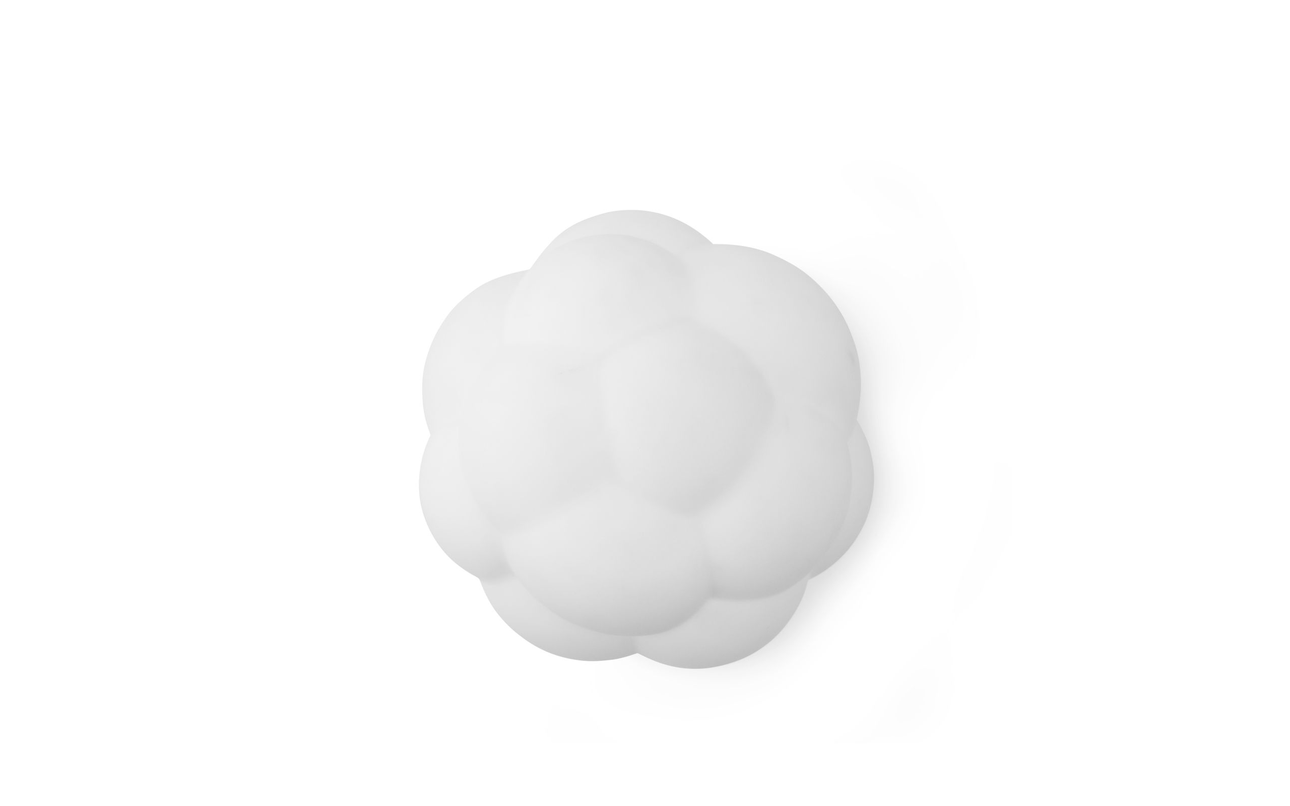 Die Pendelleuchte wird mit einem 4 Meter langen Textilkabel und einem weißen Kunststoffschirm geliefert. Externes Stromkabel und Leuchtmittel sind nicht enthalten. Bubba ist eine Kollektion charaktervoller Leuchten, die von den vielgestaltigen Clustern schwebender Seifenblasen inspiriert sind.