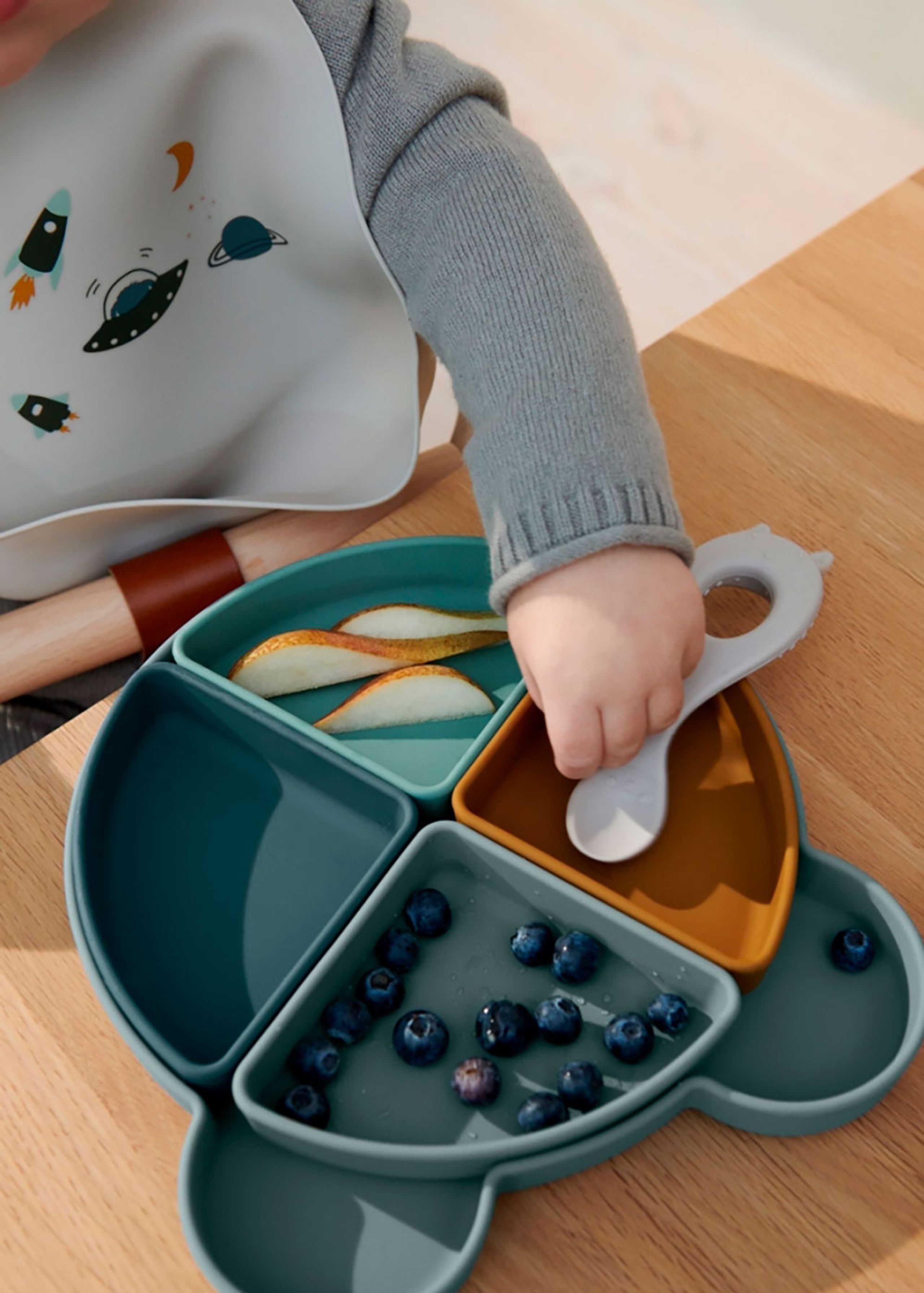 Der clevere Teller mit Unterteilung von LieWood. Der Arne-Teller ist in Fächer unterteilt, was die Handhabung der Lebensmittel erleichtert.