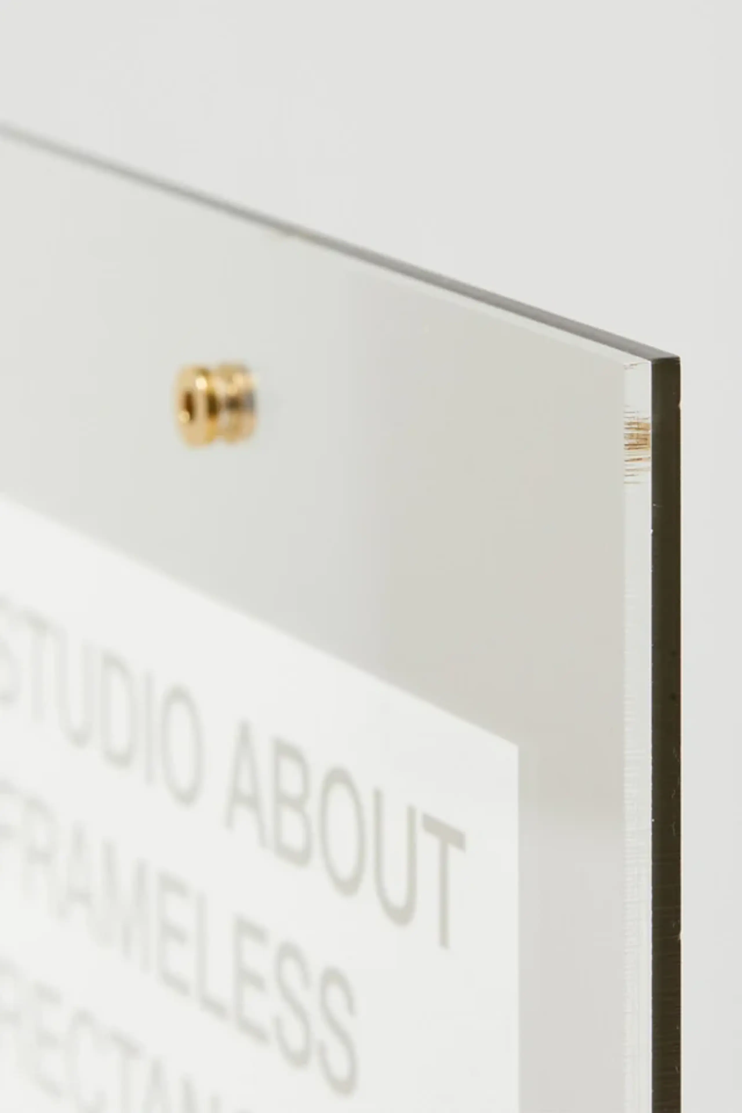 Frameless ist aus hochwertigem Acryl gefertigt und zeichnet sich durch tadellose Handwerkskunst und Liebe zum Detail aus. Sein transparenter Charme verleiht jedem Zuhause einen ätherischen Touch. Dieses rahmenlose Meisterwerk strahlt Eleganz und Raffinesse aus und fügt sich mühelos in verschiedene Einrichtungsstile ein, von minimalistischer Modernität bis hin zu klassischer Opulenz.