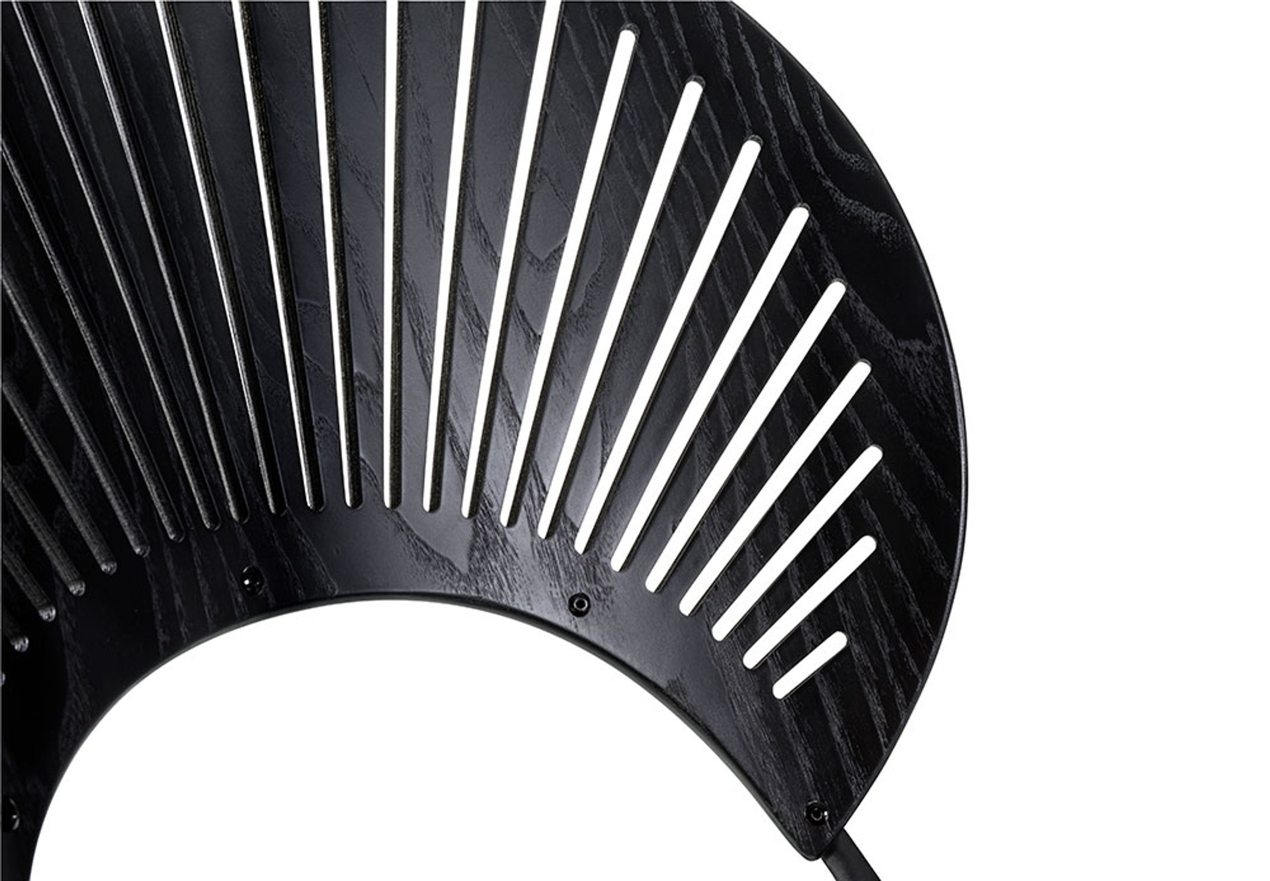 Der Stuhl ist mit einer Sitzfläche ausgestattet, die den Charakter des Stuhls in Form von gefrästen "Lebkuchen"-Formen trägt, die mit einer CNC-Frästechnik hergestellt wurden, die zu dieser Zeit eine Offenbarung für die Möbelarchitektur darstellte. Wie die Gebäudefassaden in Trinidad fordert der Stuhl das Wechselspiel von Licht und Schatten heraus, das je nach Blickwinkel des Betrachters seinen Charakter verändert. Obwohl die einzigartigen Ausschnitte im Mittelpunkt des Designs standen, ging Nanna Ditzel keine Kompromisse beim Komfort ein. Die Schale ist in einer abgerundeten Kegelform gestaltet, die die natürlichen Kurven des Körpers umarmt und so ein beeindruckendes Sitzerlebnis ermöglicht, das sich nicht nur an den Raum, sondern auch an den Menschen anpasst.
