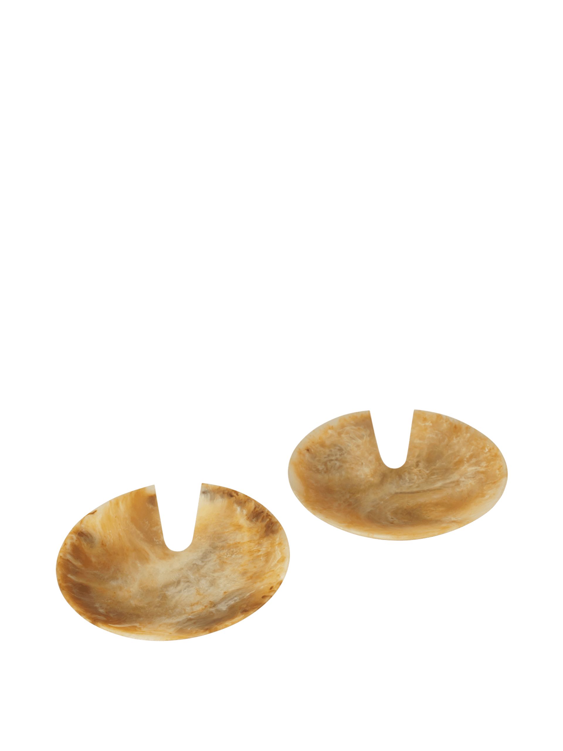 The Sol Salad Servers from Ferm Living combine functionality with aesthetic finesse. Made from solid resin with an elegant marble effect, these salad servers bring an artistic touch to the table setting. The soft, translucent finish varies naturally, making each set unique. With no traditional handles, the cutlery sits comfortably in the hand, while the crescent-shaped bowl and precisely carved detail ensure easy and stylish serving.