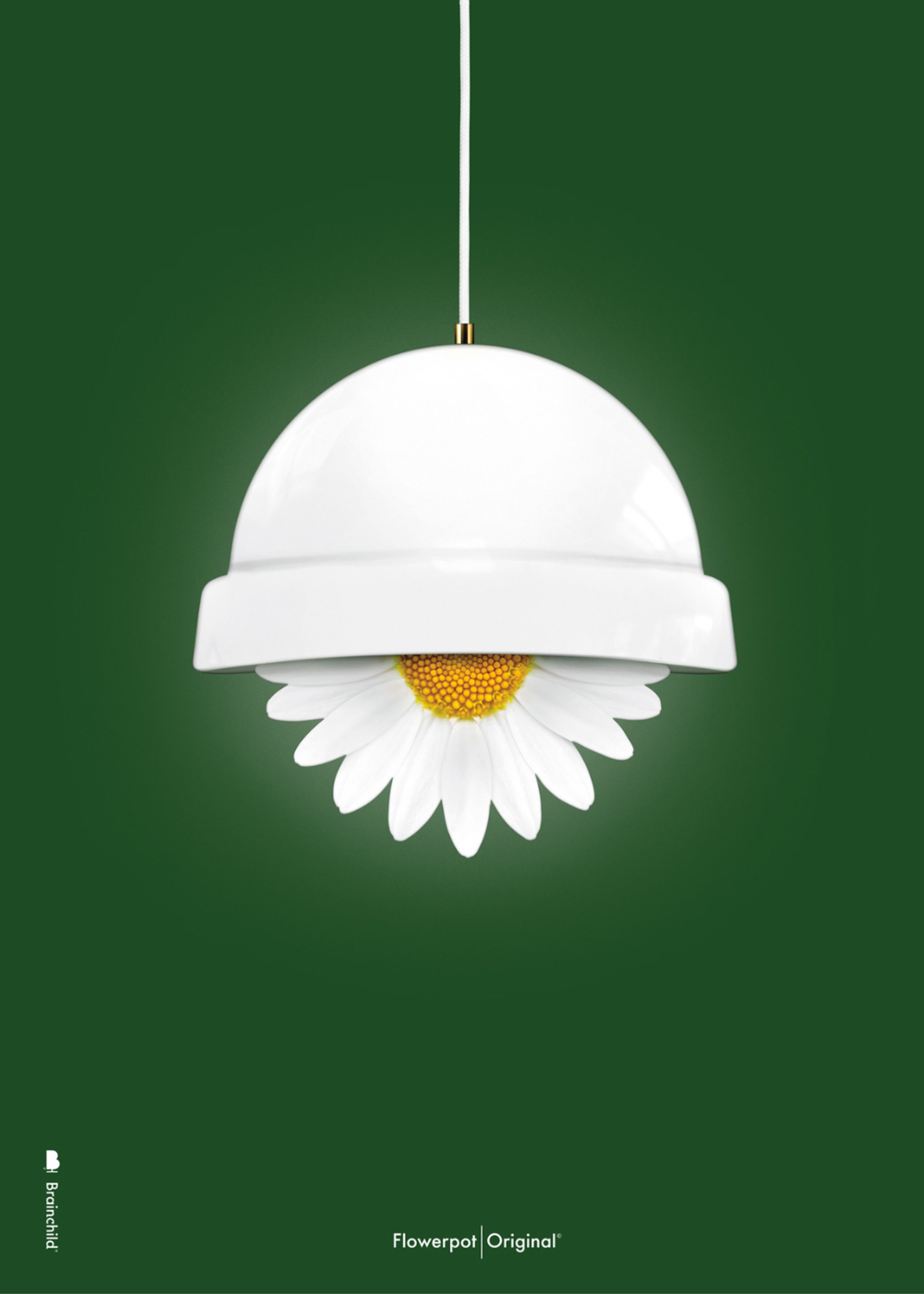 Brainchild poster with the motif Flowerpot in classic style on a green background. The poster is an interpretation of Verner Panton's lamp, Flowerpot, which was designed in 1970. Flowerpot brings new energetic light to your home.
