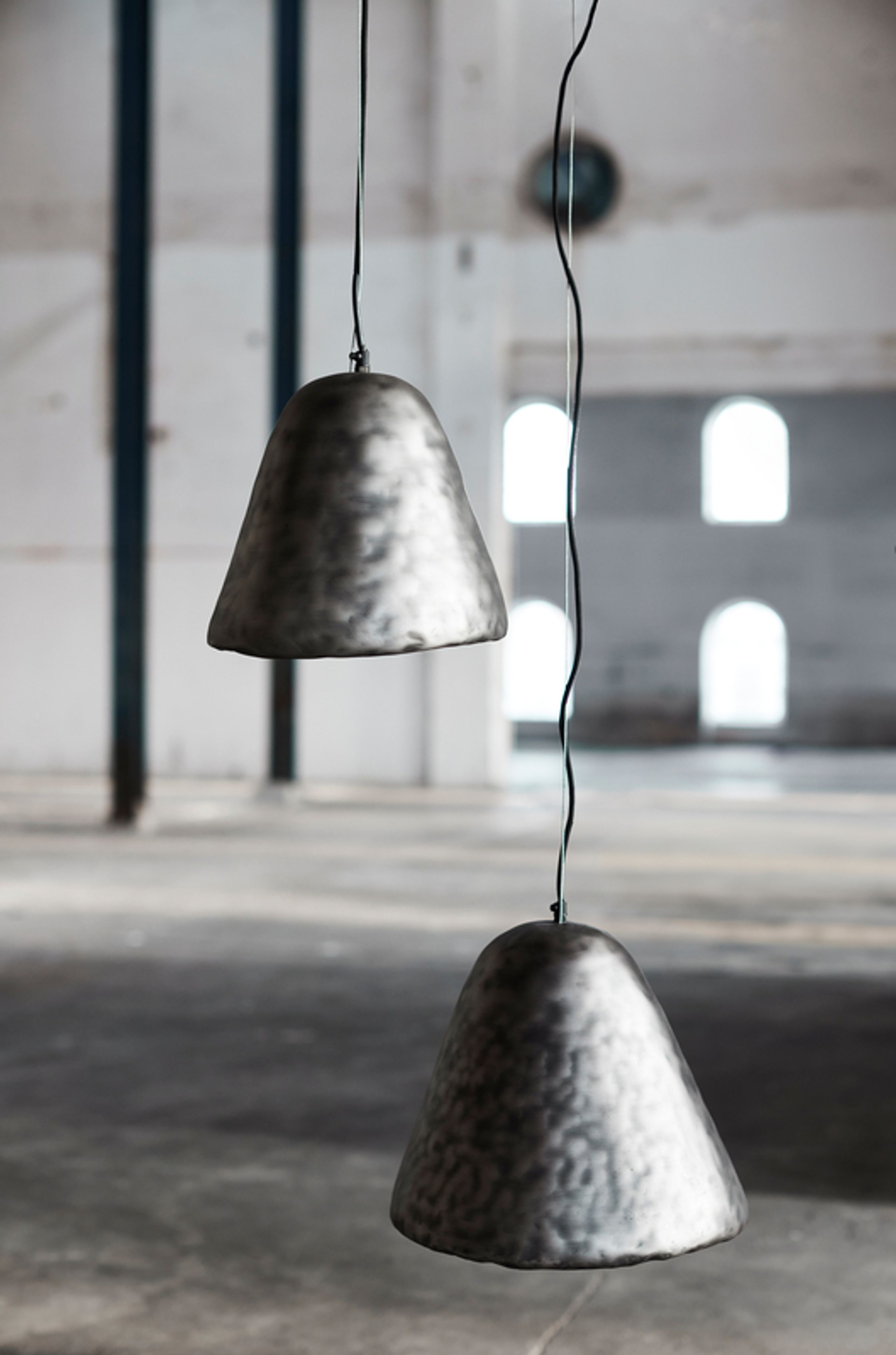 Hima is a rustic and asymmetrical lamp in steel, designed with a hammered, raw surface that evokes rustic factory halls. The beautiful gray color is patinated, creating references and narratives back to the industrial era. Hima is cast in a mold and has a bent steel edge, which gives the lamp a soft finish that creates a captivating contrast to its industrial look. The industrial Hima lamp provide a beautiful and concentrated light, which creates a cozy atmosphere. The lamp is beautiful over the dining table or as cozy lighting in a corner of the living room. The Hima lamp is available in two sizes, which can be combined for a decorative suspension. Additionally, the Hima lamp is suitable for combining with materials other than steel to create a personalized and unique expression in the space. The lamp has an E27 socket and a max 25 WATT.