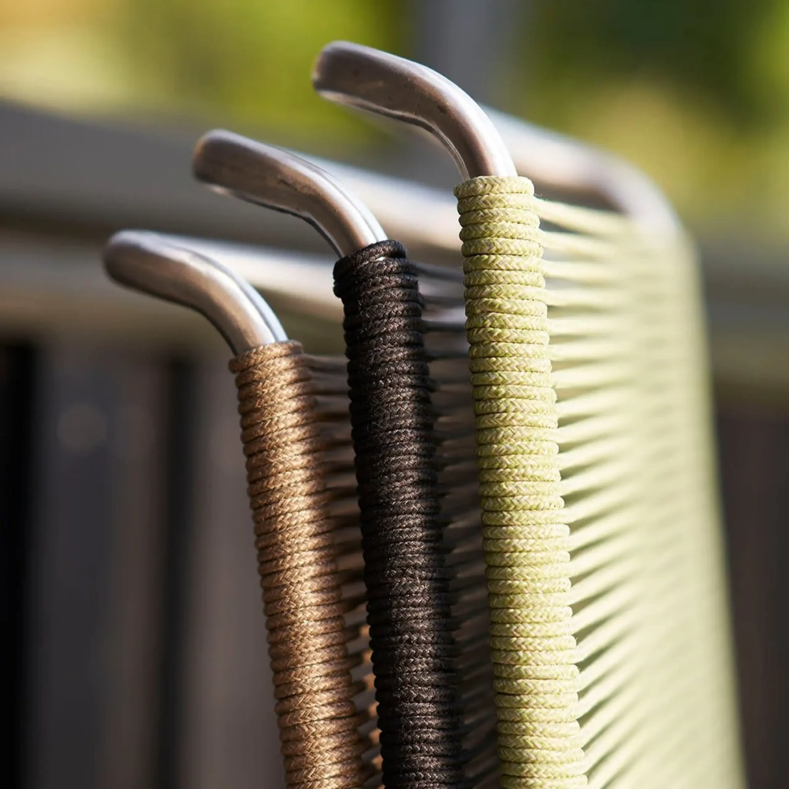 • Materials: Stainless steel and polyester cords.