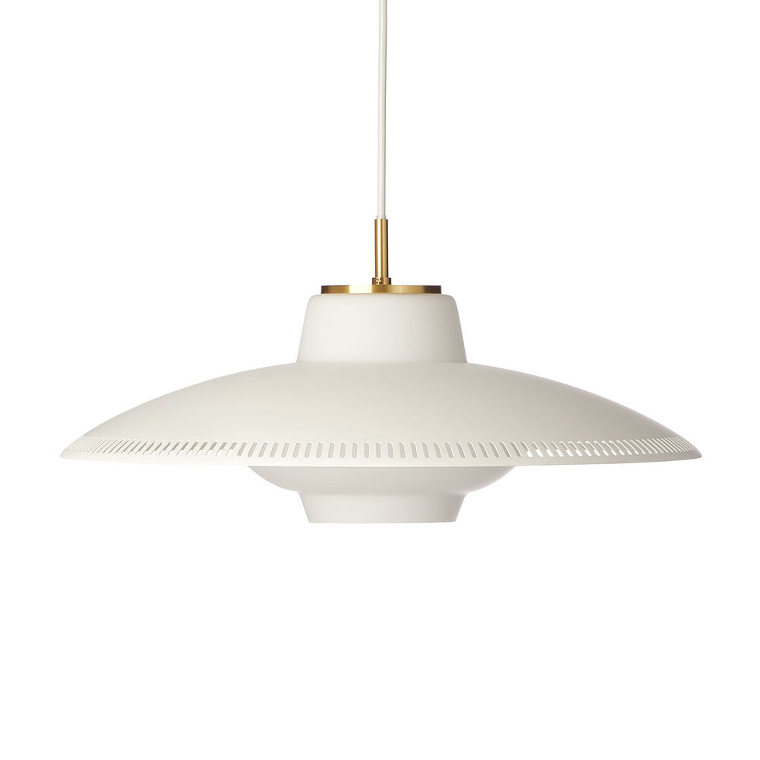 Opal Shade, designed by Danish lighting designer Svend Aage Holm-Sørensen, is based on the love many lamp designers and lighting masters have had for opal glass over the past decades. The Opal Glass's diffused and dimmed light creates an attractive atmosphere that invites you into the room. The lamp's wide metal shade helps to create a focused light over the table, while the grooves of the shade help to illuminate the entire room in the special light that opal glass gives off. With a selection of familiar colors from the Warm Nordic universe, as well as refined brass details, the lamp has a retro-modern look that can easily be decorated in the home.