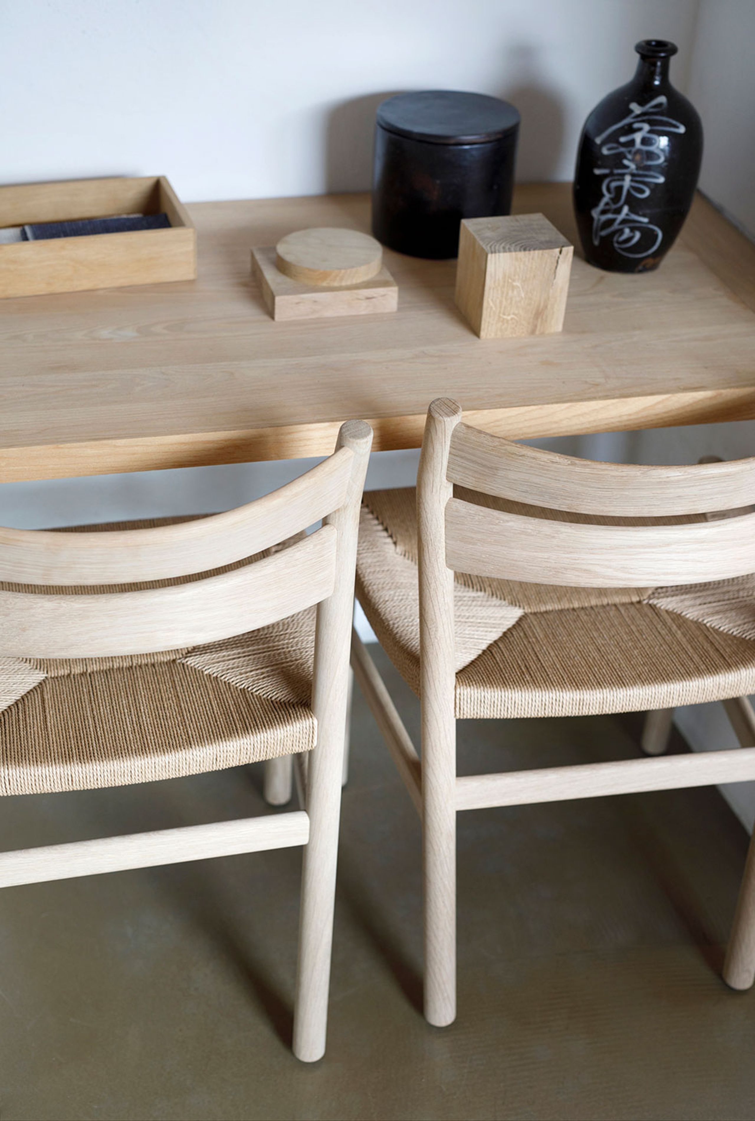 • Material: Made of solid wood with a frame in soap-treated oak, oiled oak, black lacquered oak or oiled smoked oak. The seat is made of natural colored or black paper wicker that is treated with soap and wax, making it stain resistant.