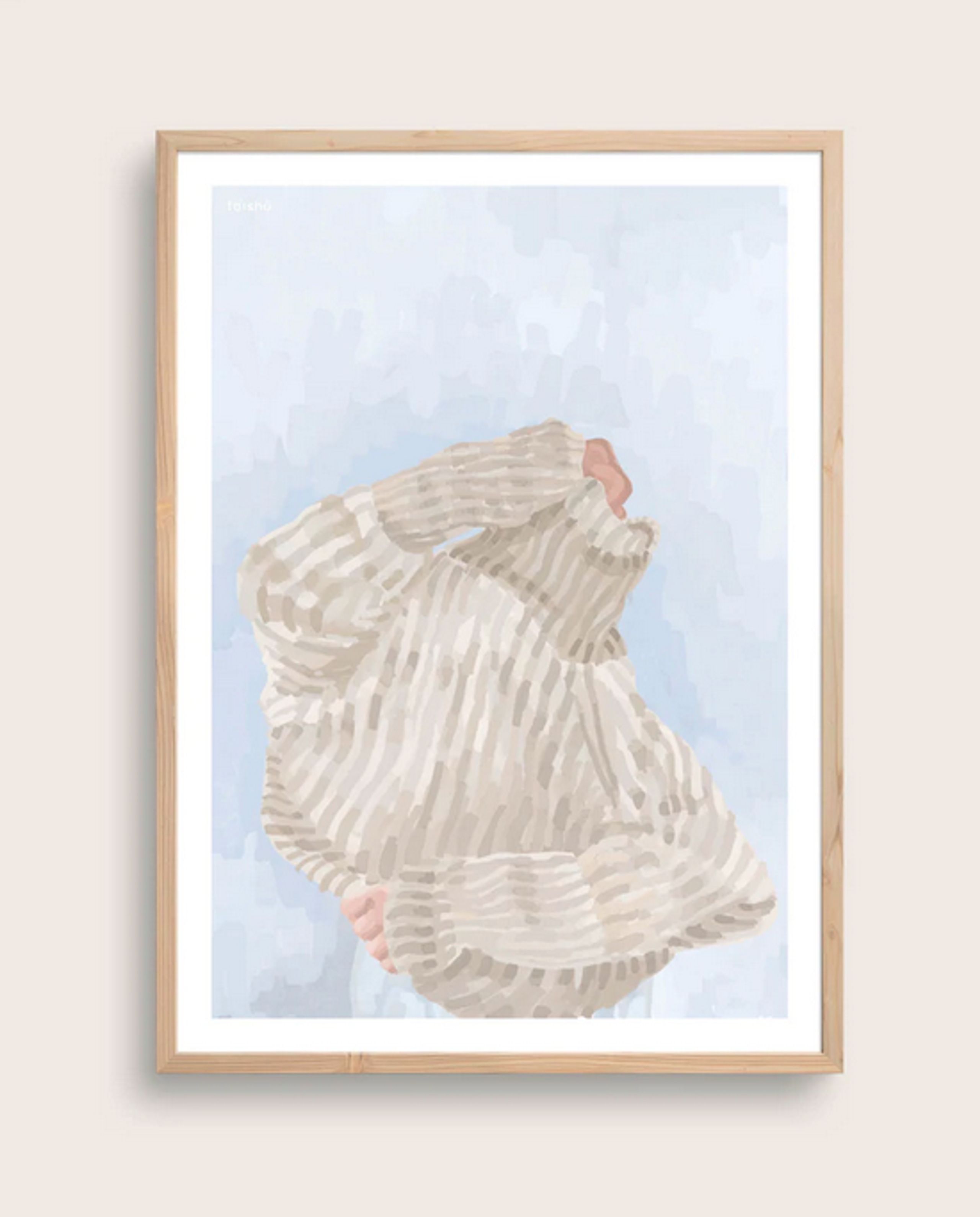 The Strokes & Stitches #2 poster from Taisho is a very elegant poster. The motif on the poster depicts a person in a grey knit. The person is modelled up by a gouche-inspired style. The poster is perfect in the kitchen to create a stylish look, with calm colors. It can also be easily placed in the living room where it instantly creates a homely atmosphere. The poster can easily be combined with other Taishö posters to create a play of colours. The posters are available in many different sizes, which makes it easier to merge it into your home.