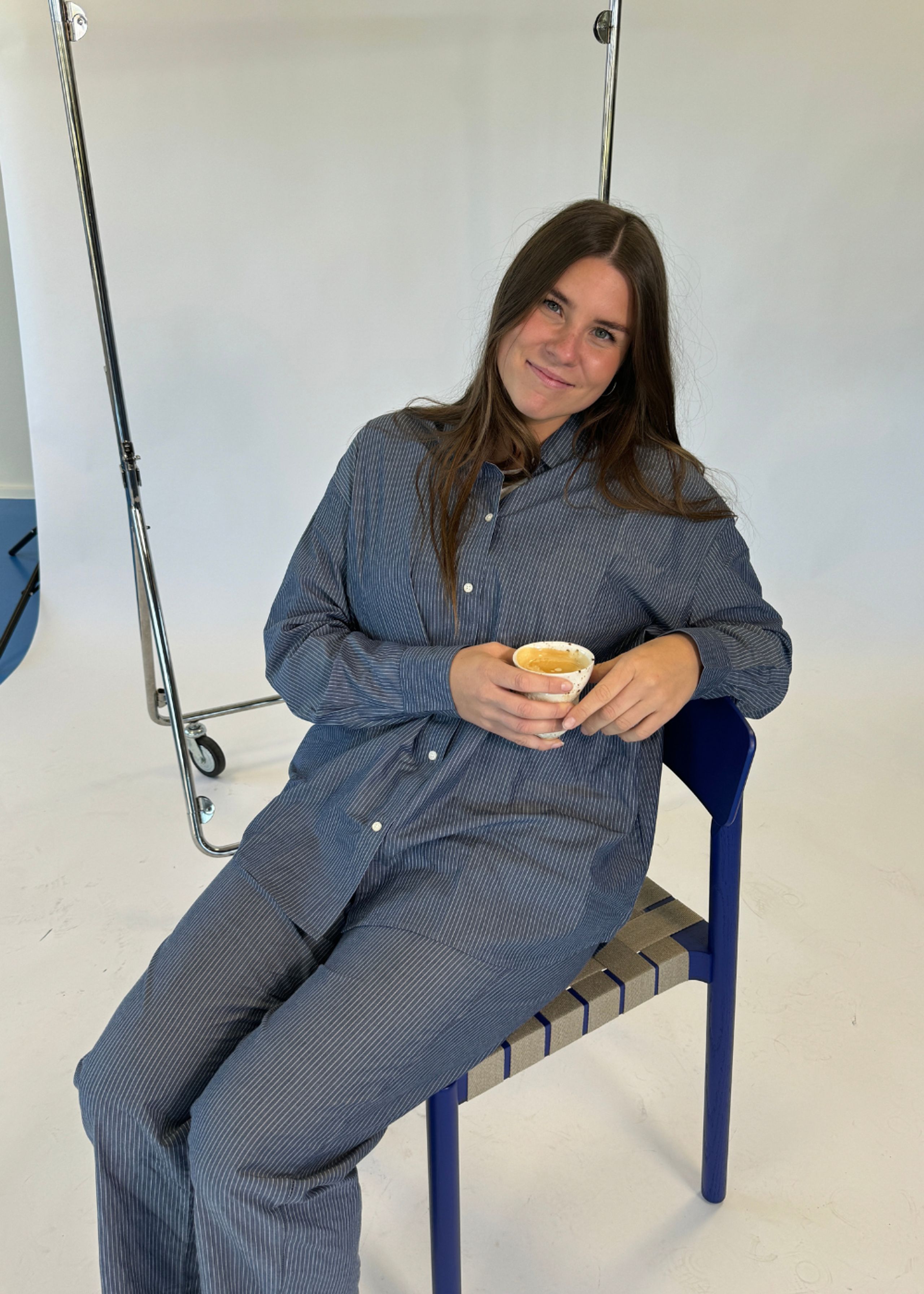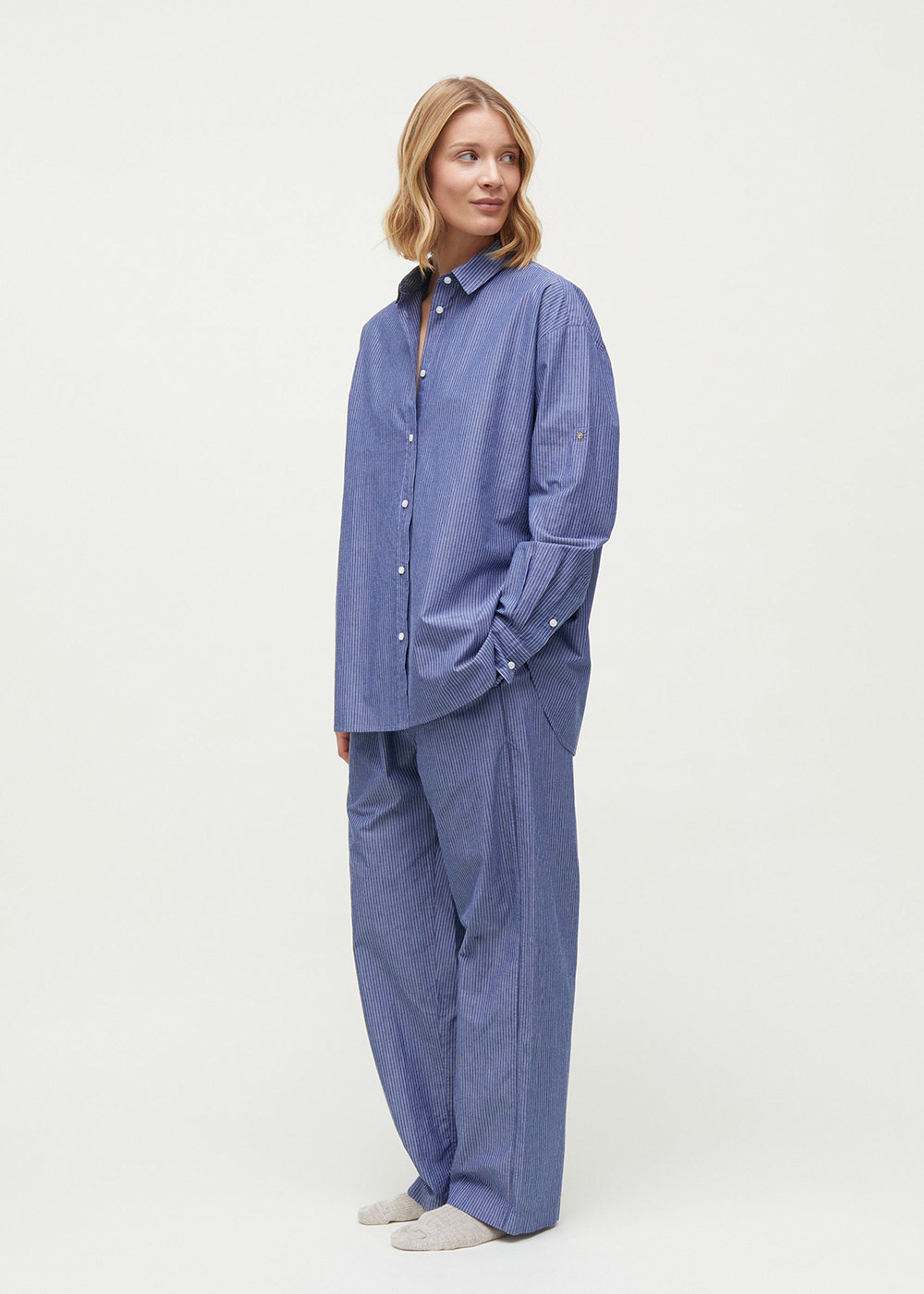 This shirt from Aiayu is the perfect combination of casual elegance and comfort. Made from soft organic cotton, it features a classic striped pattern in shades of blue that will add a timeless touch to your wardrobe.