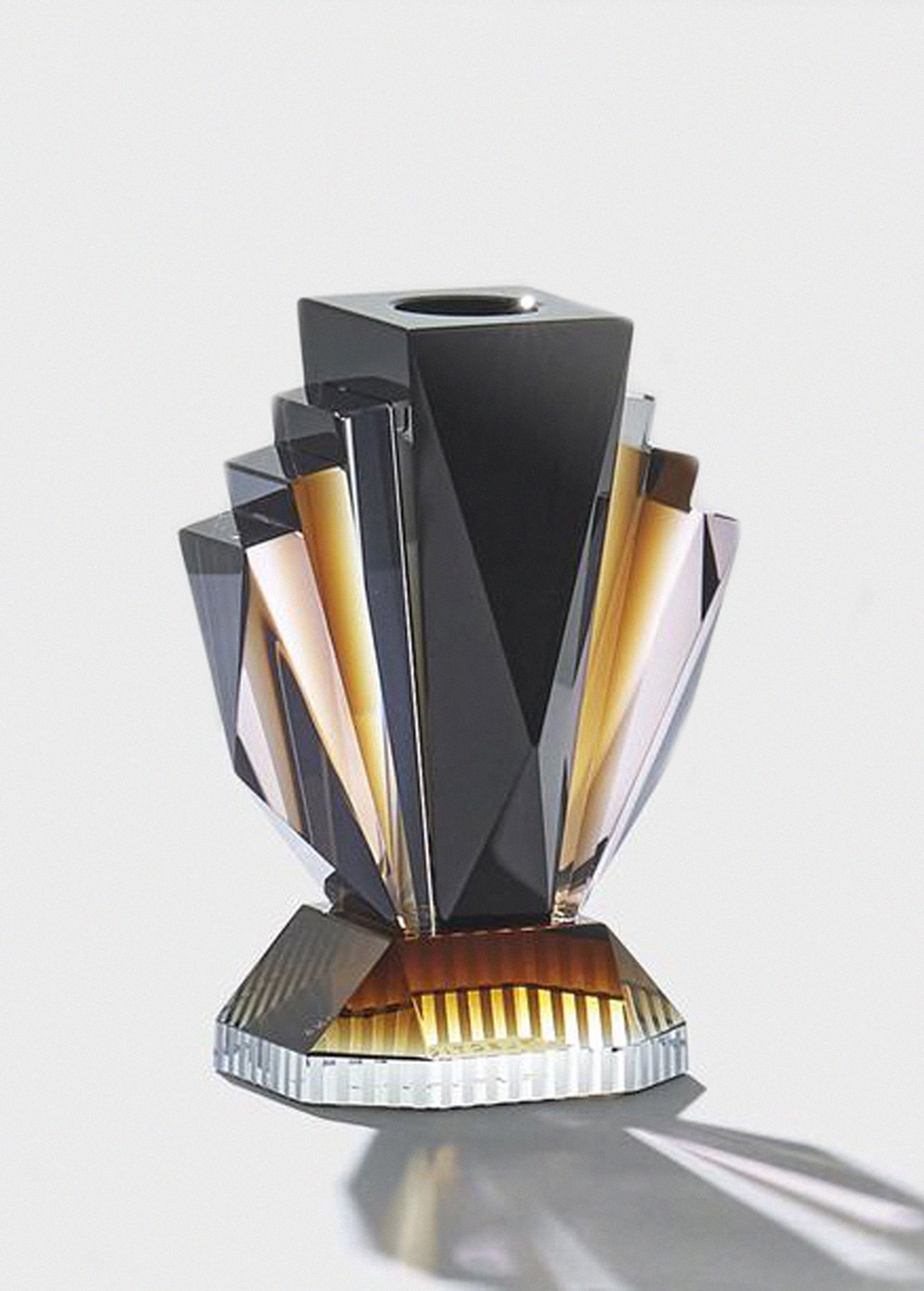 The feminine geometric shapes of the Brooklyn candlestick are inspired by the unique architecture and tall buildings of New York and Brooklyn. With sophisticated modern colors hand-carved in crystal glass, the candlestick is elegant and sculptural in itself but can also be combined with Reflection Copenhagen's other glass candlesticks, for a beautiful symphony of glass.