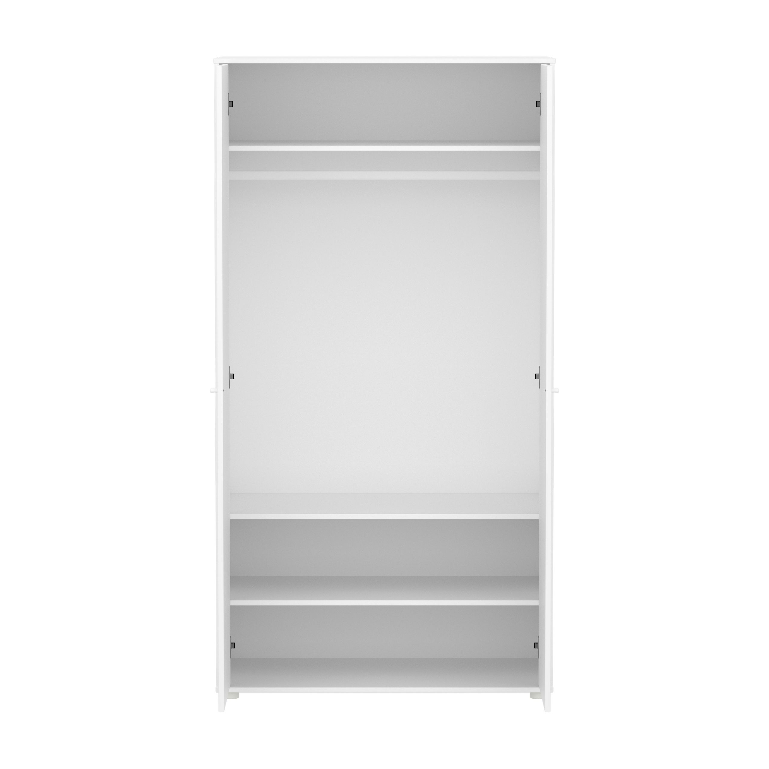 Wardrobe SAGA by Flexa, designed by the FLEXA Design Team, combines functionality with an aesthetically timeless look. The wardrobe is equipped with two doors with soft-close function, two adjustable and one fixed shelf as well as a flexible hanger bar that can be positioned as needed. The round white metal handles and characteristic grooved details create a harmonious balance between classic and modern design. The inspiration from the Danish west coast is reflected in the organic lines and light surface. SAGA adds calm and structure to any children's room and fits seamlessly into many styles.
