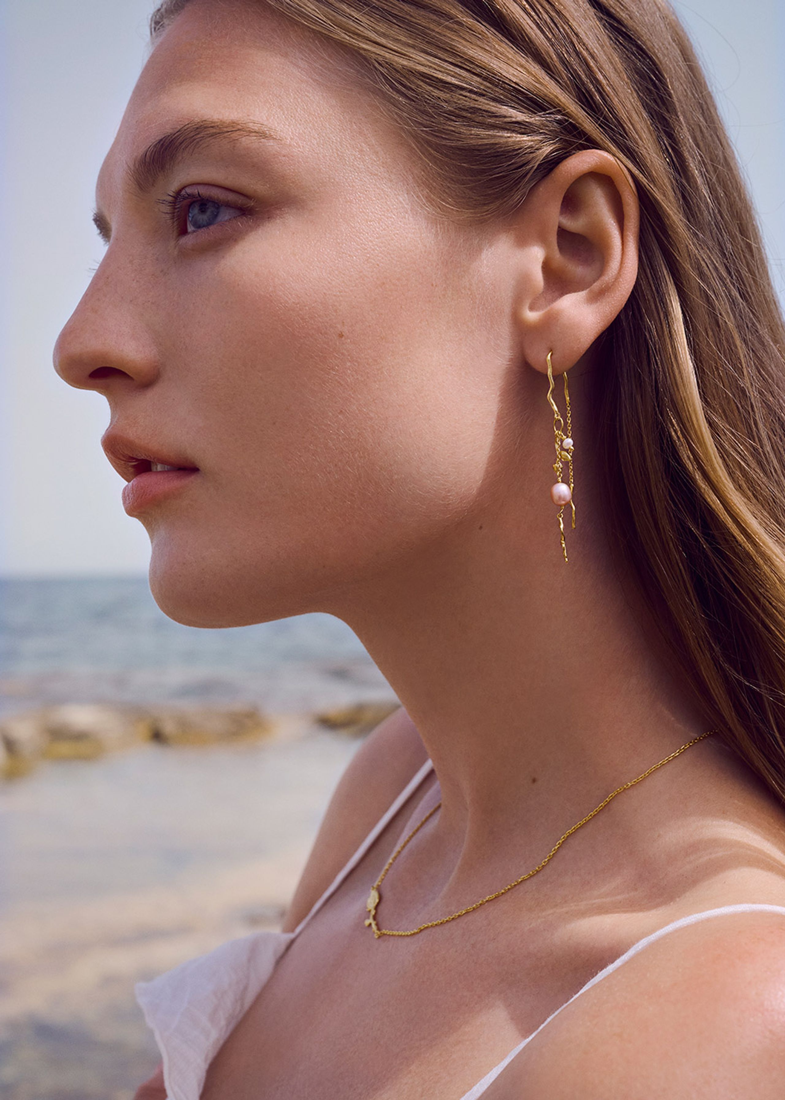 The Fiori Earrings from Maanesten are a poetic tribute to the organic beauty of nature. The swaying, curved metal details mimic the elegant movement of rose stems, while small freshwater pearls add a feminine touch of purity and balance. The asymmetrical design creates a dreamy lightness that moves beautifully with you.
