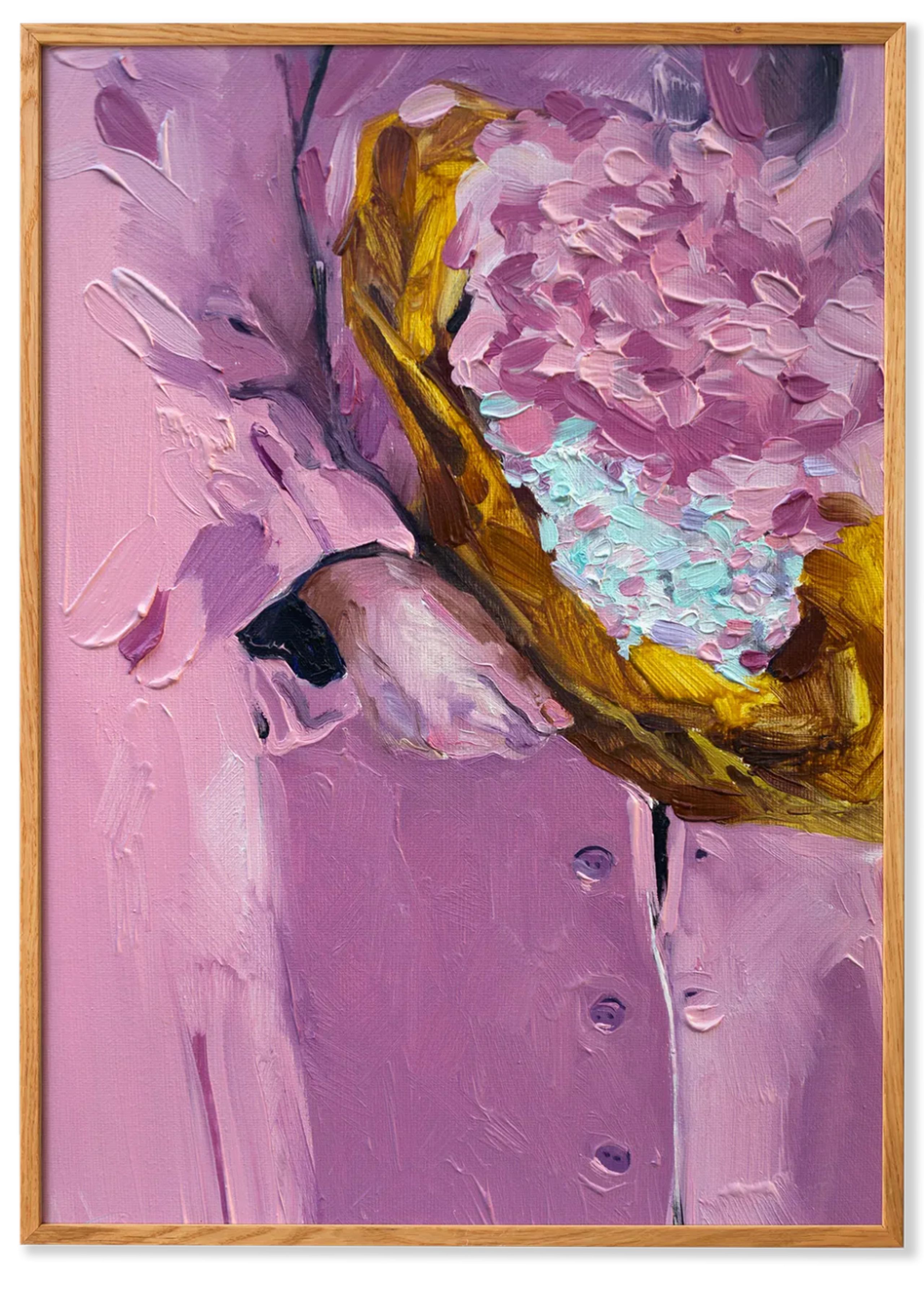 Add a poetic and artistic expression to your home with Blooming Mood - a beautiful art print by Copenhagen-based artist Lolita Pelegrime. With its vibrant lavender colours and delicate blue hues, the piece creates a harmonious composition where a detailed motif of a figure holding a bouquet of flowers unfolds in the characteristic, texture-rich brushstrokes that characterise Pelegrime's art.