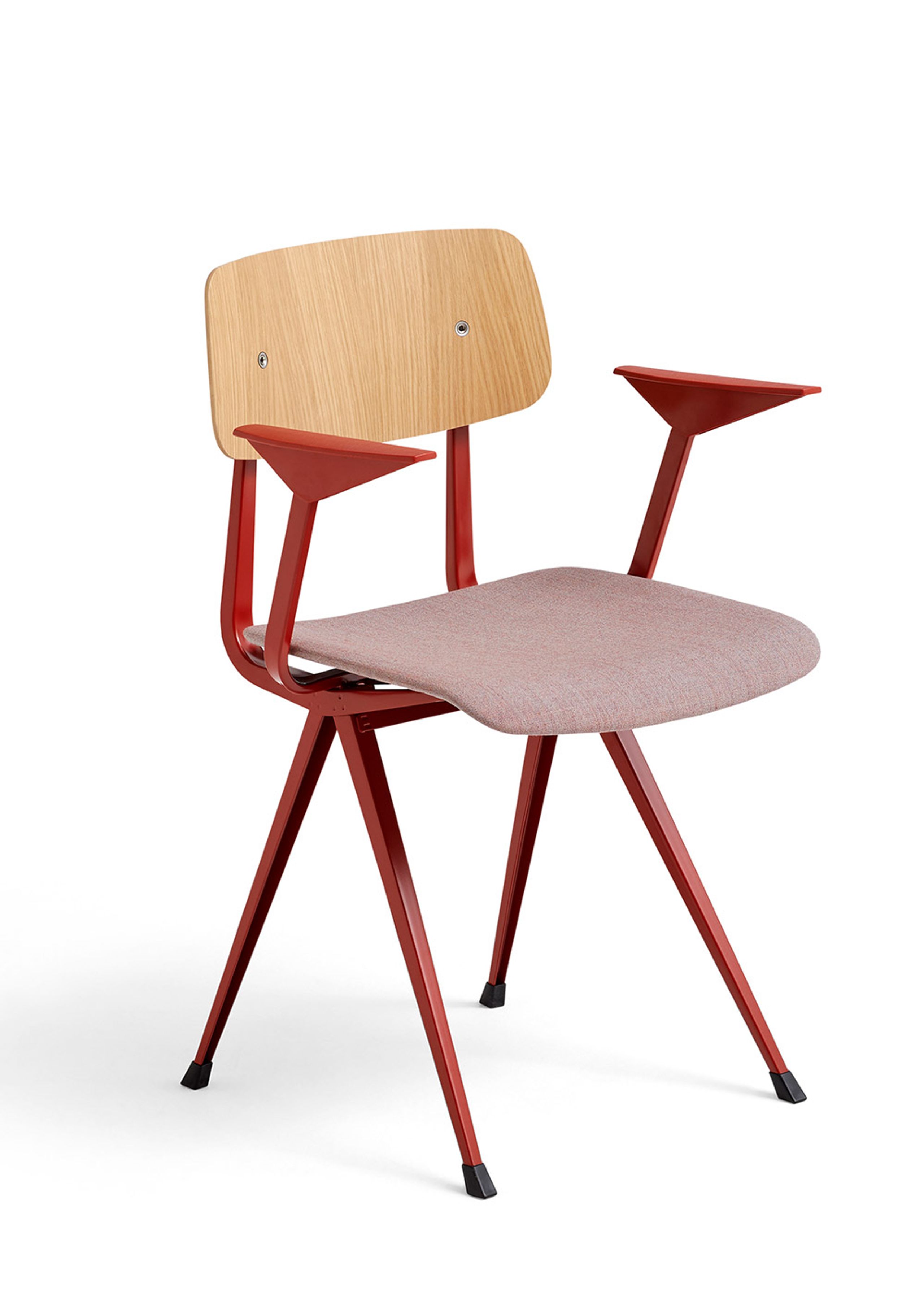 Result Chair was originally designed in the 1950s by Friso Kramer and Wim Rietveld. Here the duo developed the chair for Ahrend, which has now been relaunched in collaboration with HAY. Particularly characteristic of Result is the slender frame carved from steel plates and lacquered in neutral colours. In combination with an ultra-thin seat and backrest in lacquered oak, the chair achieves an exceptional lightness that at the same time makes the furniture easy to integrate into the interior.