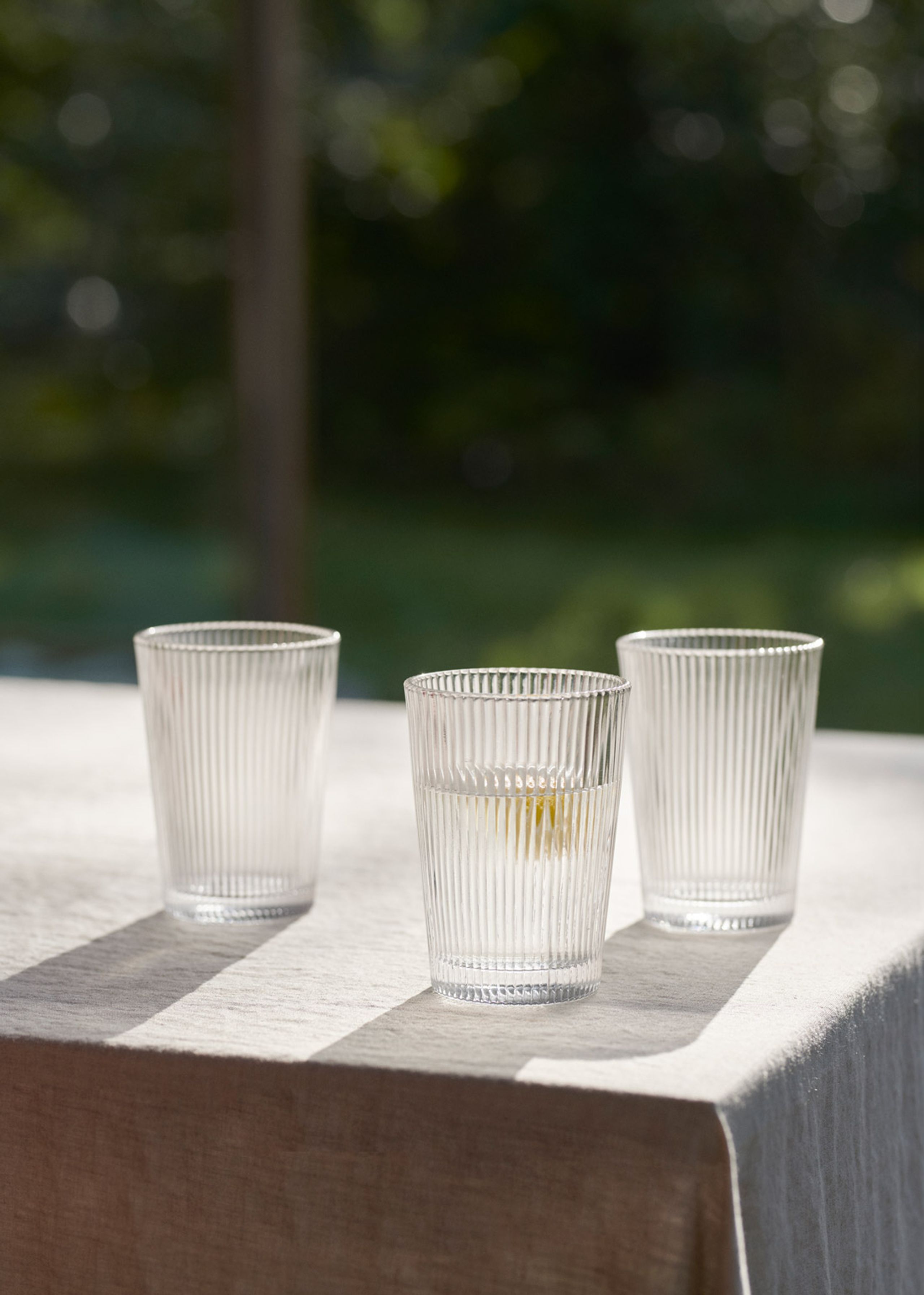 Pilastro drinking glasses are incredibly beautiful and are therefore perfect for both everyday and parties. When Francis Cayouette designed the glasses, he found inspiration in the Art Deco style of the 1920s. This can be seen in the glasses' conical shape and grooves, which make them simple yet elegant.
