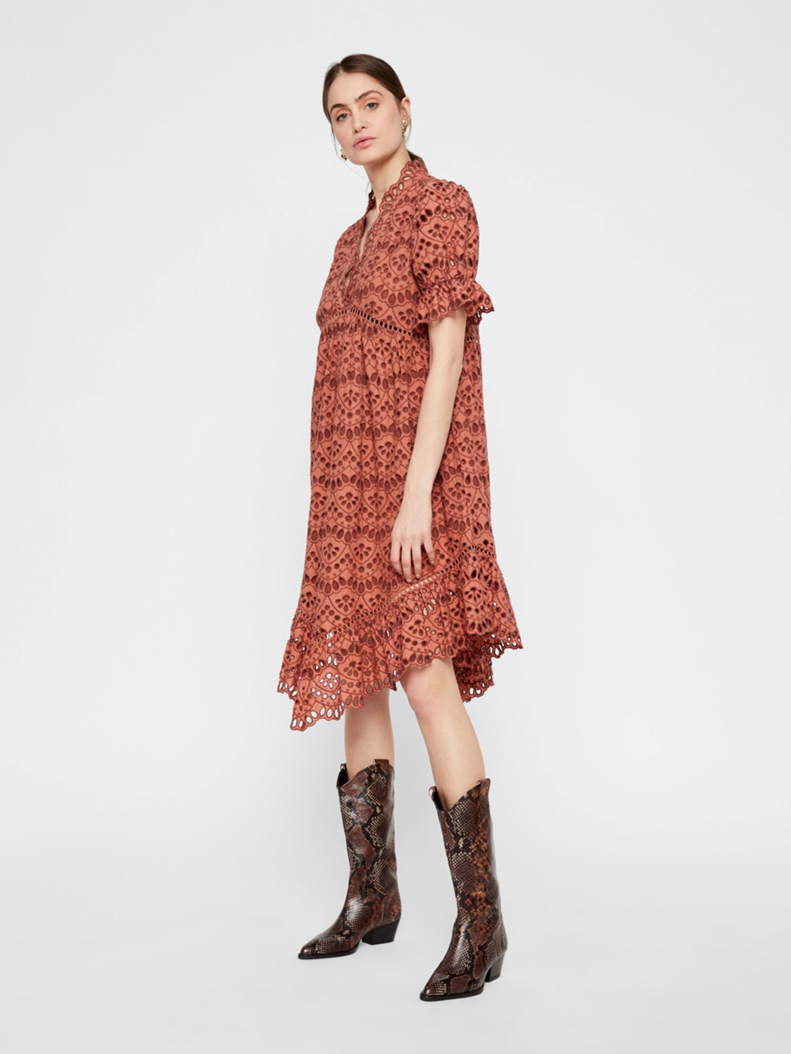 Beautiful dress in embroidery anglaise from Danish Y.A.S. The dress has the most beautiful details and necklines. Wear it with tights or jeans depending on the occasion. So nice!