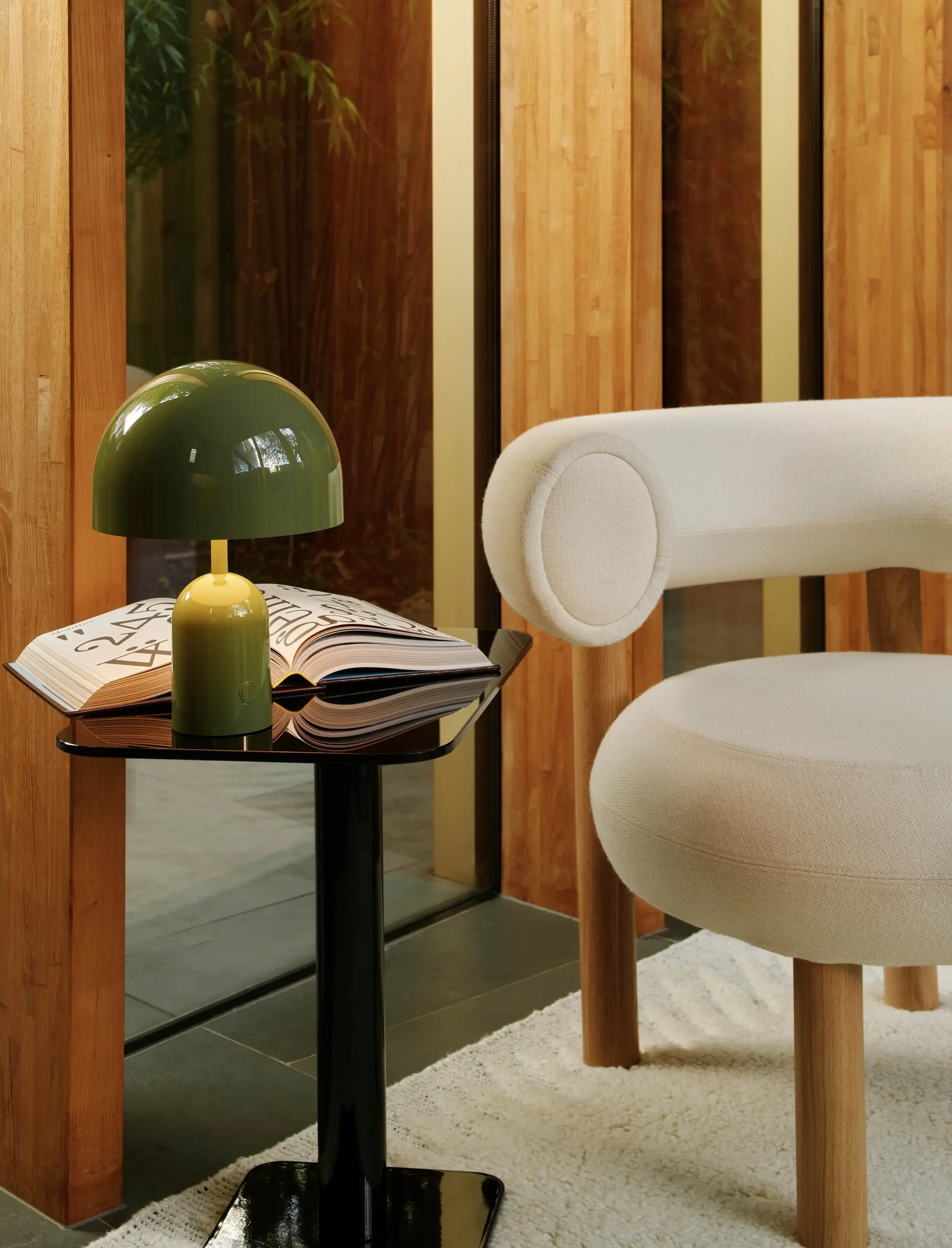 Bell Portable Led de Tom Dixon es una elegante interpretación del minimalismo industrial, diseñada en un distintivo alto brillo que refleja maravillosamente su entorno. Fabricada en acero prensado cromado y con un discreto difusor integrado, la lámpara proyecta una luz suave y atmosférica. Su icónica silueta, inspirada en los parachoques de los coches clásicos, combina funcionalidad con una presencia casi escultórica.