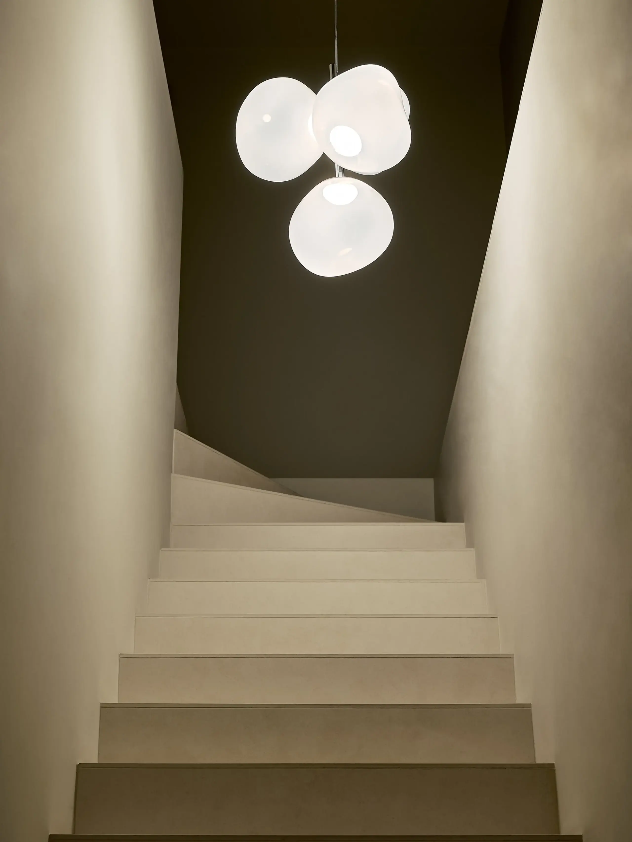 Esta escultural lámpara de araña es ideal para espacios pequeños, donde añade luz y peso artístico. Cuélguela sobre una mesa de comedor redonda o en un pasillo con techos altos para conseguir el máximo impacto, y combínela con líneas limpias y materiales oscuros para lograr un aspecto sofisticado.
