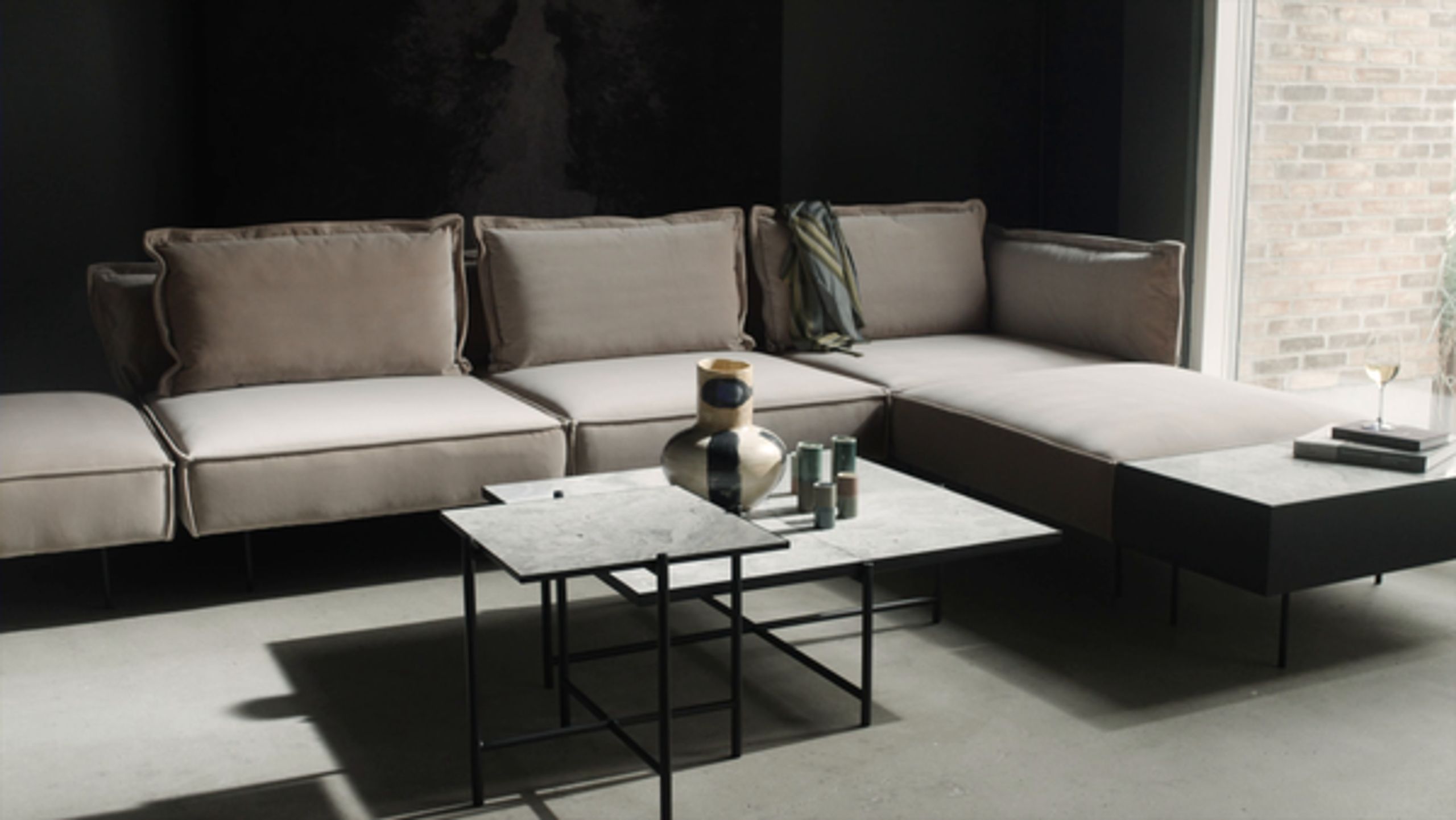 Le canapé modulaire est conçu par Emil Thorup. Le canapé est doté d'un grand confort et d'une mousse haute densité. Il présente également un aspect fluide grâce à ses élégants pieds en acier noir mat. Le canapé conserve sa forme pendant des années car il est doté d'un dossier en acier flexible et d'un coussin en fibre unique. Les meubles sont conçus comme des blocs de construction, de sorte que vous pouvez assembler le canapé comme vous le souhaitez dans de nombreuses combinaisons possibles.