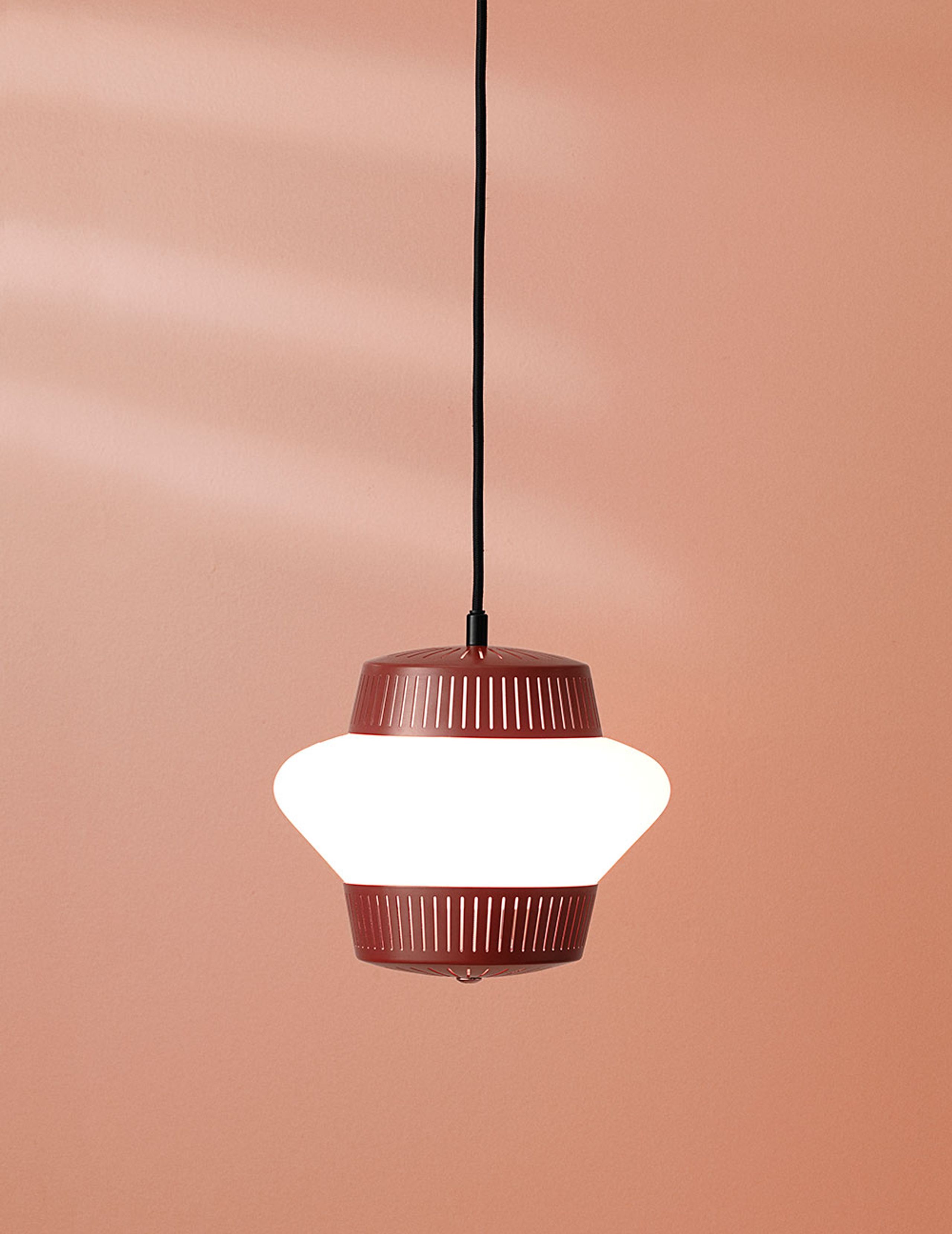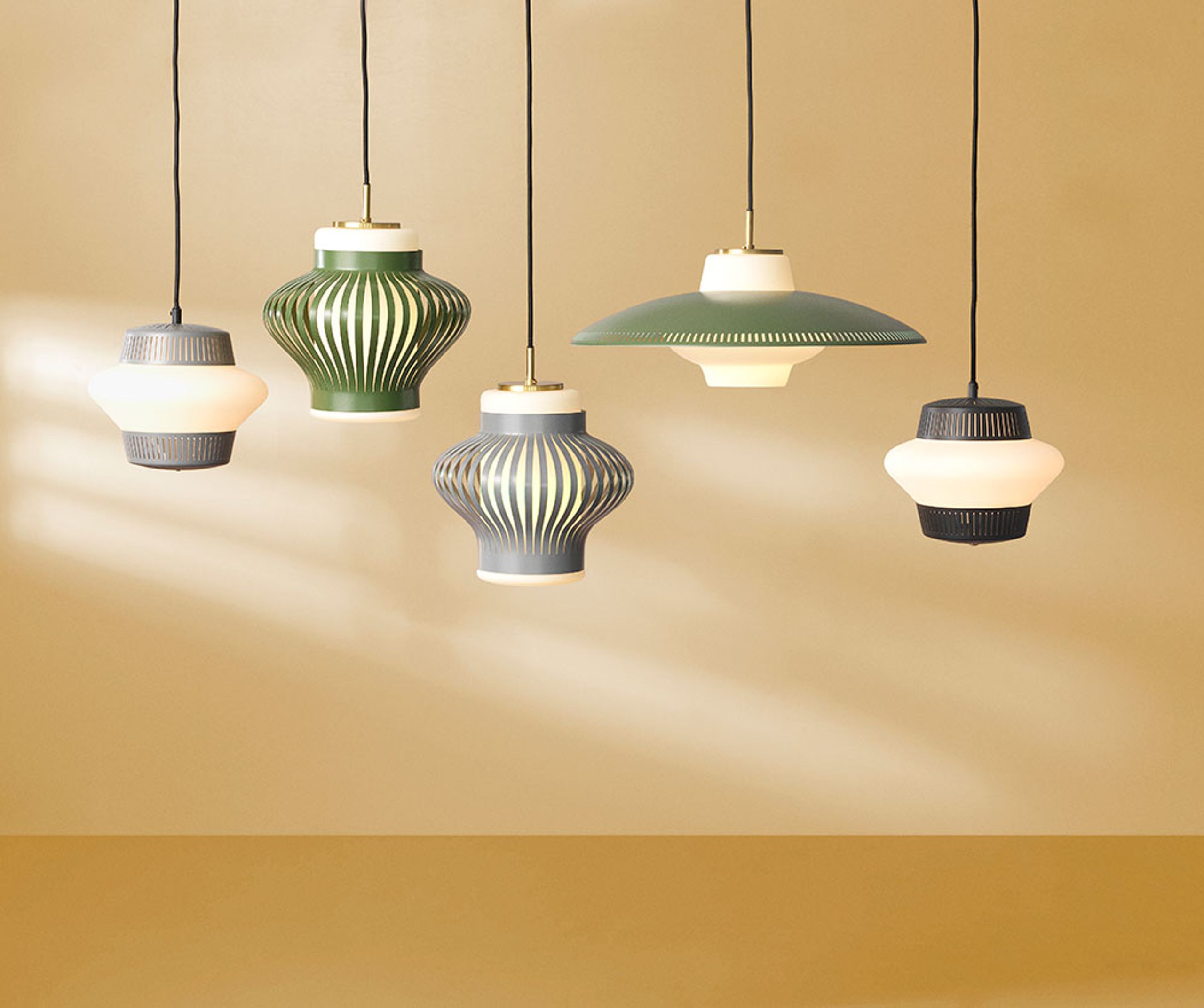 Opal Arch", conçu par le Danois Svend Aage Holm-Sørensen, est basé sur l'amour que de nombreux concepteurs de lampes et maîtres de l'éclairage portent au verre opale au cours des dernières décennies. La lumière diffuse et tamisée du verre opale crée une atmosphère attrayante et accueillante dans la pièce. Les rainures de l'abat-jour en métal de la lampe permettent d'éclairer toute la pièce avec la lumière spéciale que dégage le verre opale, tout en ayant une lumière focalisée au centre de la lampe. Avec une sélection de couleurs familières de l'univers Warm Nordic, ainsi que des détails raffinés en laiton, la lampe a un look rétro-moderne qui peut facilement être intégré dans la maison.