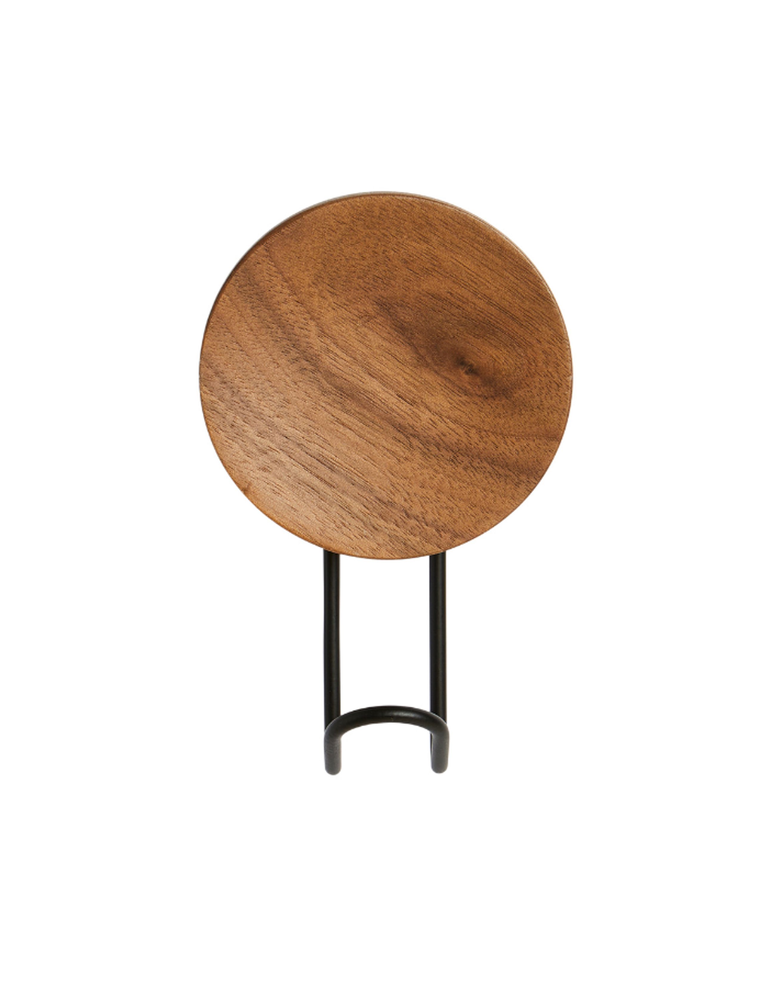 Il bellissimo appendiabiti da parete Around è la molletta perfetta per il vostro corridoio. L'appendiabiti ha una piastra in legno di noce a forma di cerchio. Al centro della piastra si trova un anello rotondo in ottone o metallo nero, che funge da gancio per appendere abiti o accessori. Qui si possono appendere giacche e sciarpe. La combinazione di funzionalità elegante e design moderno conferisce un dettaglio unico al corridoio.