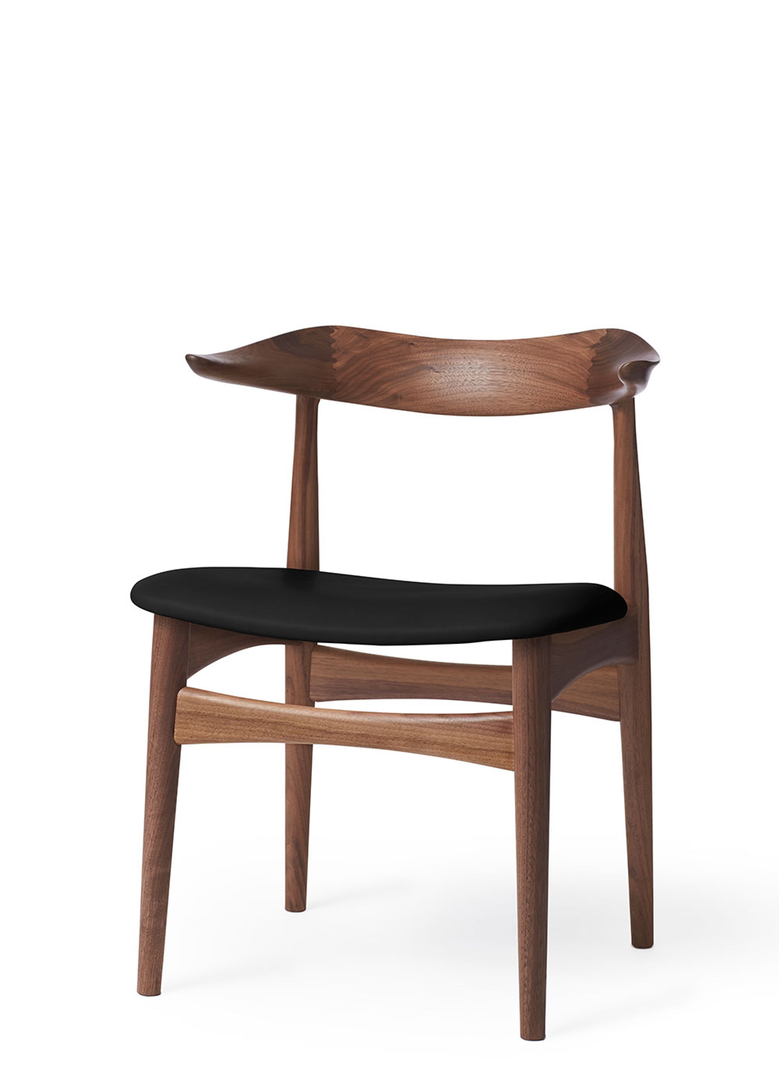 Cow Horn Chair' is een iconische stoel in de Deense meubelarchitectuur en is in zijn ontwerp zowel trouw aan de designtrends van de jaren '60 als aan de fundamentele ideeën van de ontwerper Knud Færch - meubilair dat zowel binnenvalt als ruimte creëert. Het sculpturale ontwerp is gemaakt van kwaliteitshout met de hoogste graad van vakmanschap, wat tot uiting komt in de extravagante verbindingen van de stoel en het meubel naar een geheel nieuw niveau brengt. In de geest van de jaren '60 is de stoel verkrijgbaar in diep geolied walnotenhout dat contrasteert met bijna elke stof. Daarnaast wordt de stoel geproduceerd in een licht geoliede eik met een moderne lichte uitstraling en in een feinsmecker versie die de twee materialen combineert waardoor originaliteit en moderniteit samenkomen in een symfonie.