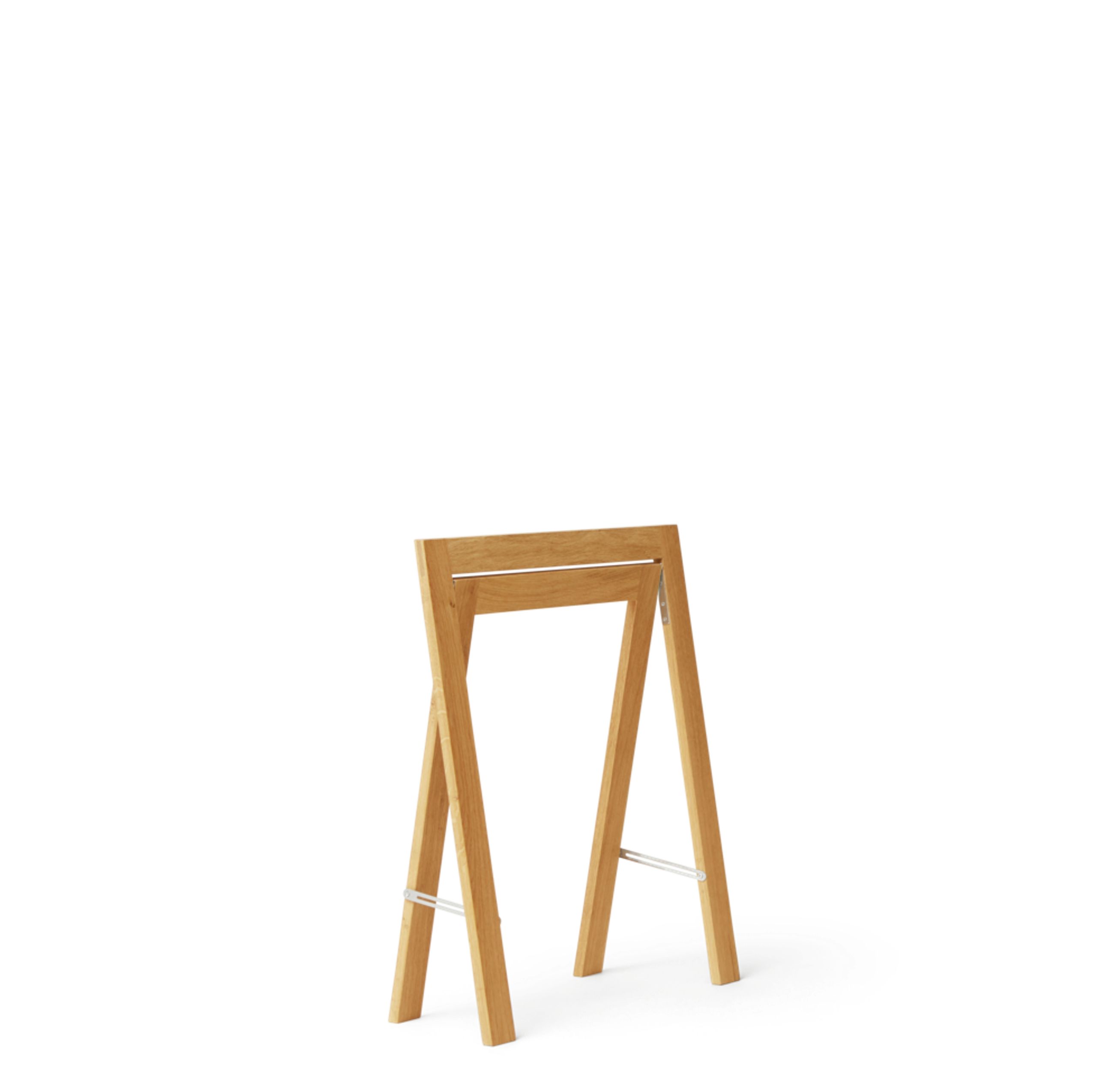 Strakke tafelsteunen van Form & Refine. Door hun opvouwbaarheid zijn ze gemakkelijk op te bergen wanneer ze niet worden gebruikt. Rechte en duidelijke lijnen benadrukken het algemene ontwerp, en het is duidelijk dat het ontwerp werd gedaan door een buitengewone architect met een sterk gevoel voor ergonomische en functionele eisen. De opmerkelijke hoekverbindingen en het gepolijste metalen beslag, gekenmerkt door een creatief gebruik van materialen, benadrukken in belangrijke mate de kwaliteit van de broek en benadrukken de subtiele deugdelijkheid ervan.