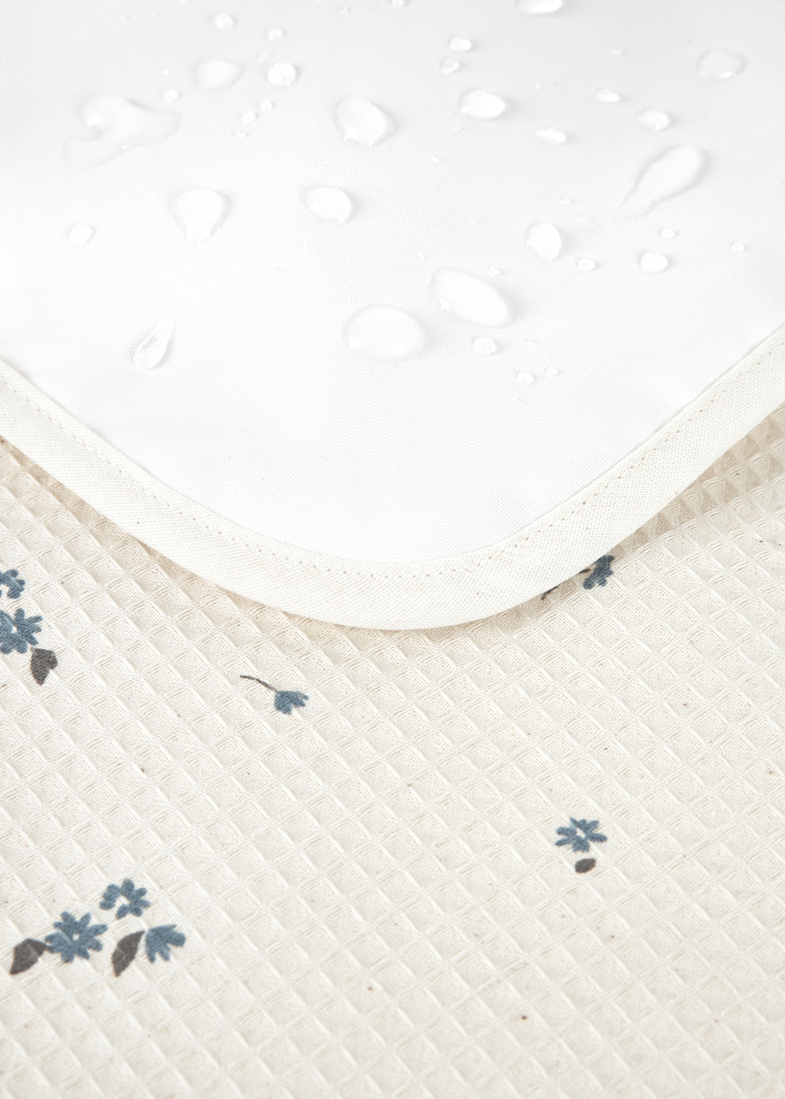 - Materiaal: Buitenkant: 100% biologisch katoen; Voering: polyester, waterdichte PVC; Vulling: 100% oekotex polyester.