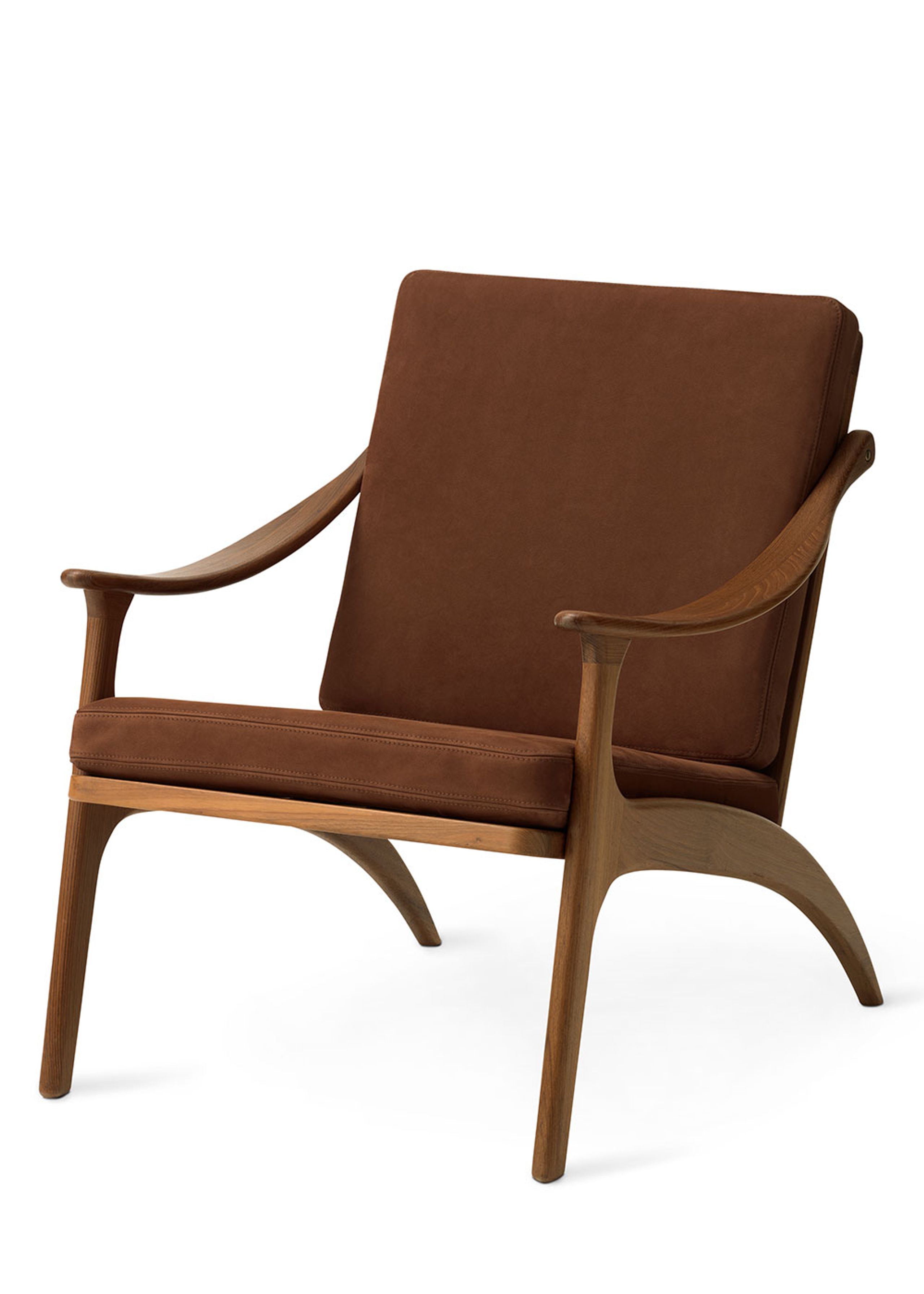 Krzesło Lean Back zostało zaprojektowane przez Duńczyka Arne Hovmand-Olsena w 1957 roku, co odzwierciedla również jego charakterystyczny design. Krzesło zostało stworzone w oparciu o klasyczne proporcje, z przemyślanymi kątami, które zapewniają najlepszy komfort siedzenia, ale również zyskuje nowoczesny akcent dzięki zaokrąglonym krawędziom, które nadają krzesłu elegancki i unoszący się wyraz. Rama dostępna jest w kolorze jasnego dębu i głębokiego drewna tekowego, które można łączyć z neutralnymi skórami lub kolorowymi tkaninami, tworząc krzesło zarówno do klasycznego, jak i nowoczesnego domu.