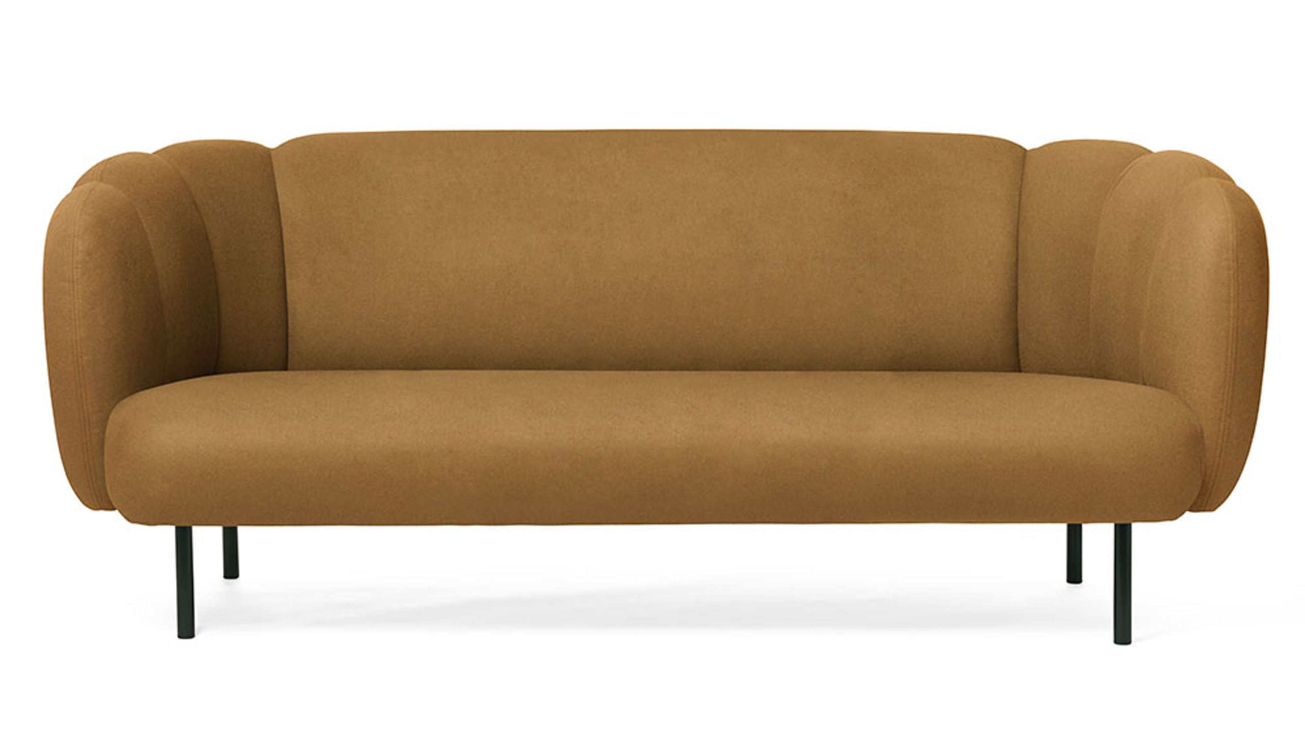 A série Cape é desenhada pela dinamarquesa Charlotte Høncke, que mostra o seu amor pelas formas e cores únicas através de uma gama de mobiliário estofado na Warm Nordic. As grandes almofadas dos móveis criam um bom conforto de assento, o que também cria uma expressão envolvente através da sua linguagem de design suave. As elegantes pernas de aço ajudam a dar ao mobiliário um design leve e flutuante que pode ser facilmente arranjado, sozinho ou em conjunto como um sortido.