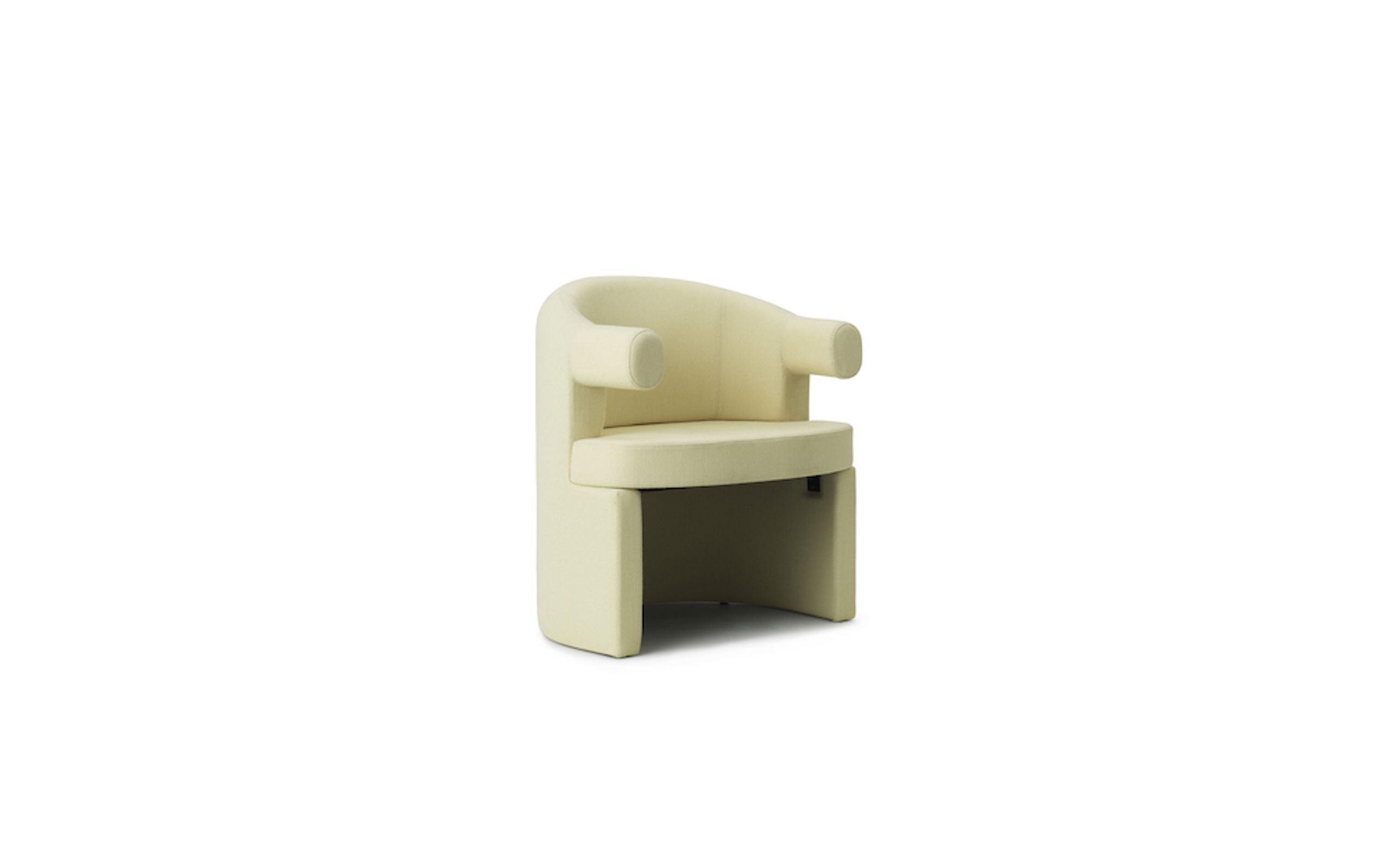 Cada elemento do design remete para a sua suavidade. As variantes de cadeira de jantar e de sala de estar são totalmente estofadas, enquanto a linguagem de design consiste em linhas arredondadas e orgânicas que se misturam.