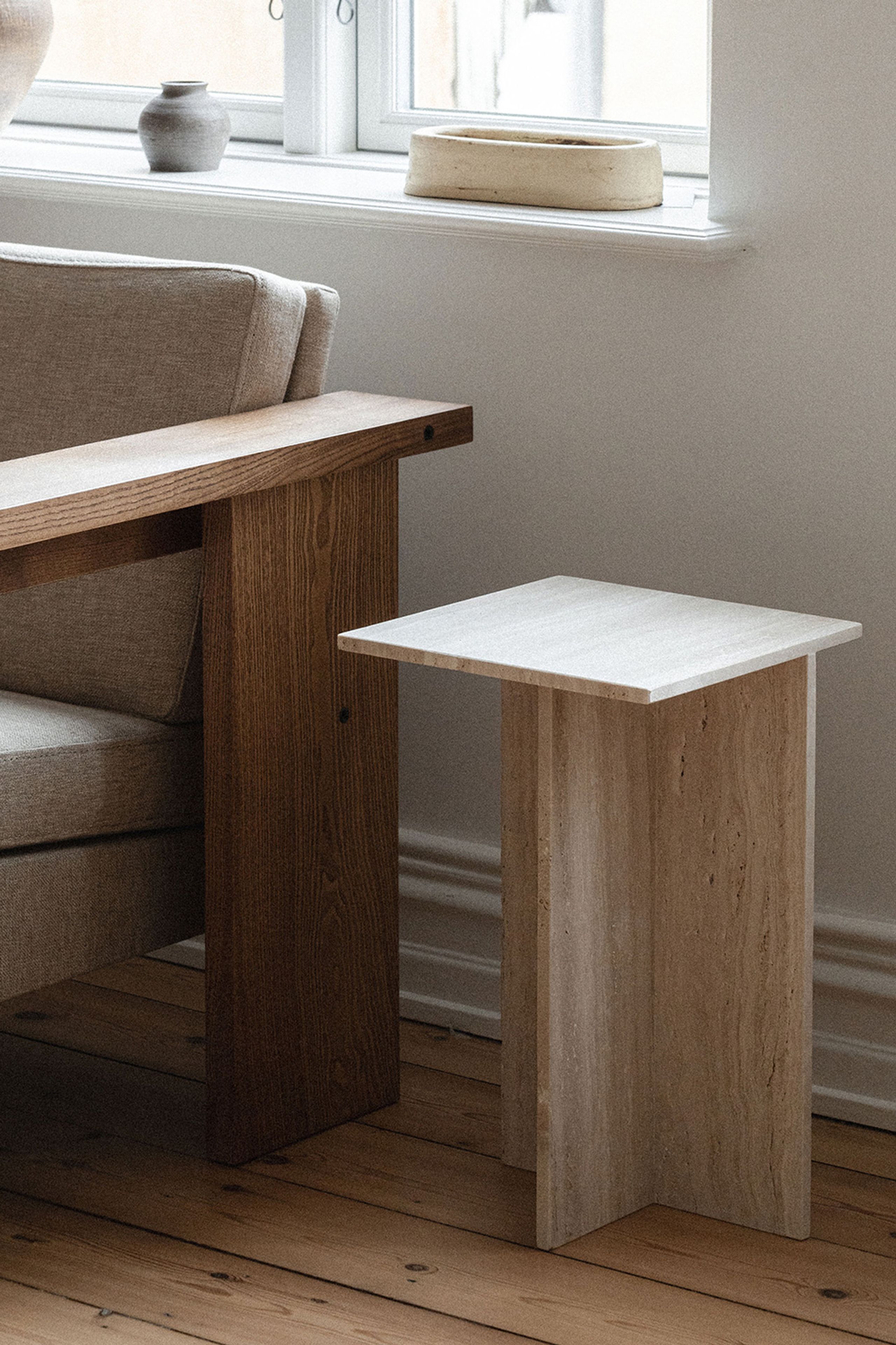 Venus er et alsidigt møbel, som kan bruges som piedestal eller sidebord afhængig af højden. Den skulpturelle vinkelfod kan arrangeres på forskellige måder, hvilket gør bordet til et dynamisk element i indretningen. Det passer smukt til både stue, soveværelse eller entré, og kan let kombineres med andre naturmaterialer for en harmonisk stil.