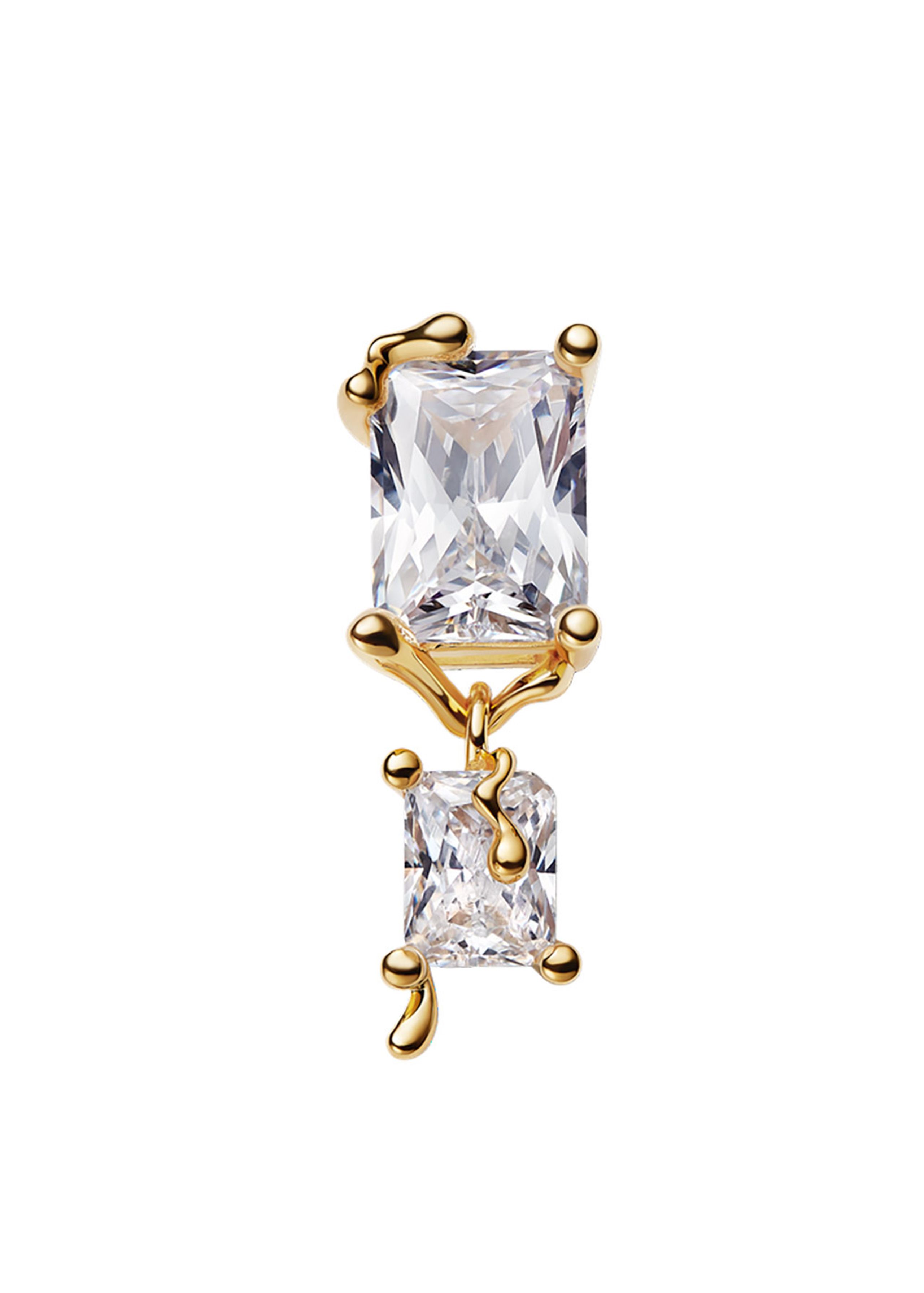 Krásne kvapkové náušnice od Maria Black. Náušnica je umiestnená na puzete, z ktorej visia dva lesklé osemhranné zirkóny.