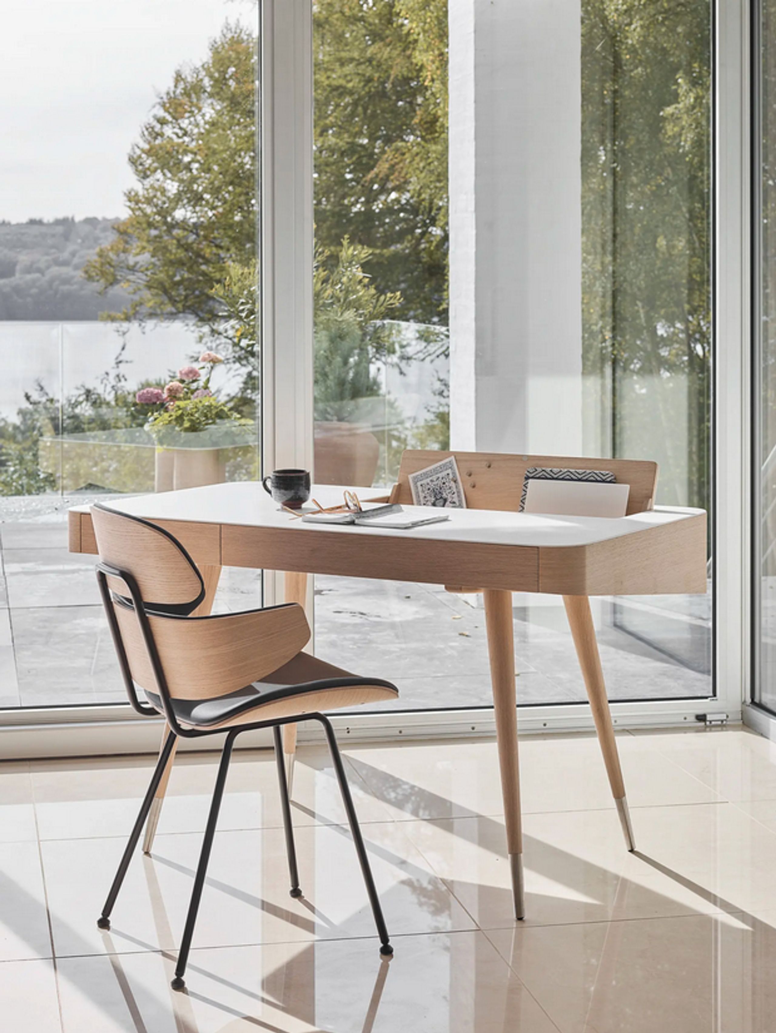 Stôl POINT AK1330 z kolekcie Naver, ktorý navrhla spoločnosť Nissen & Gehl, spája krásu a funkčnosť v elegantnom, modernom dizajne. Tento písací stôl s dokonale bielou doskou z Corianu obsahuje otvorené veko, ktoré ukrýva dômyselný úložný priestor. Magnetická doska je ideálna na poznámky a kancelárske dekorácie, zatiaľ čo diskrétne umiestnený otvor na káble udrží nabíjačky a káble úhľadne skryté. Vďaka dvom priestranným zásuvkám poskytuje stôl AK1330 dostatok miesta na notebook a základné pomôcky, takže je ideálnou voľbou pre každú domácu kanceláriu.