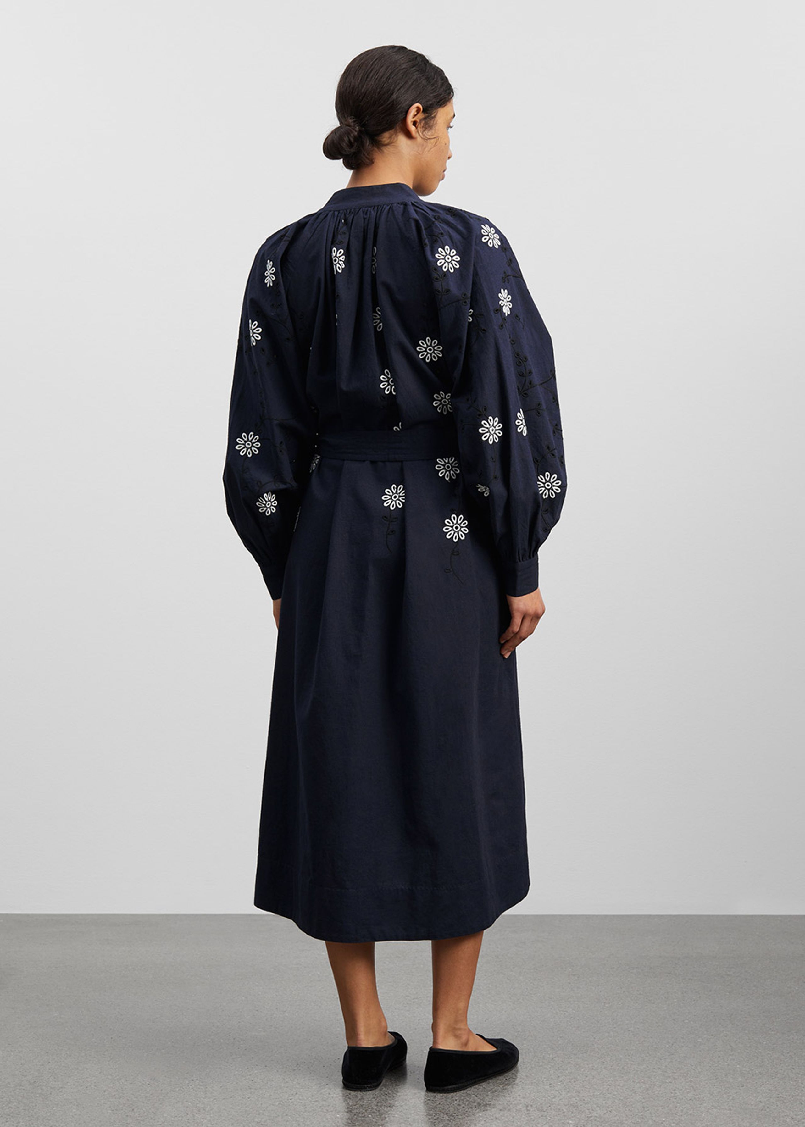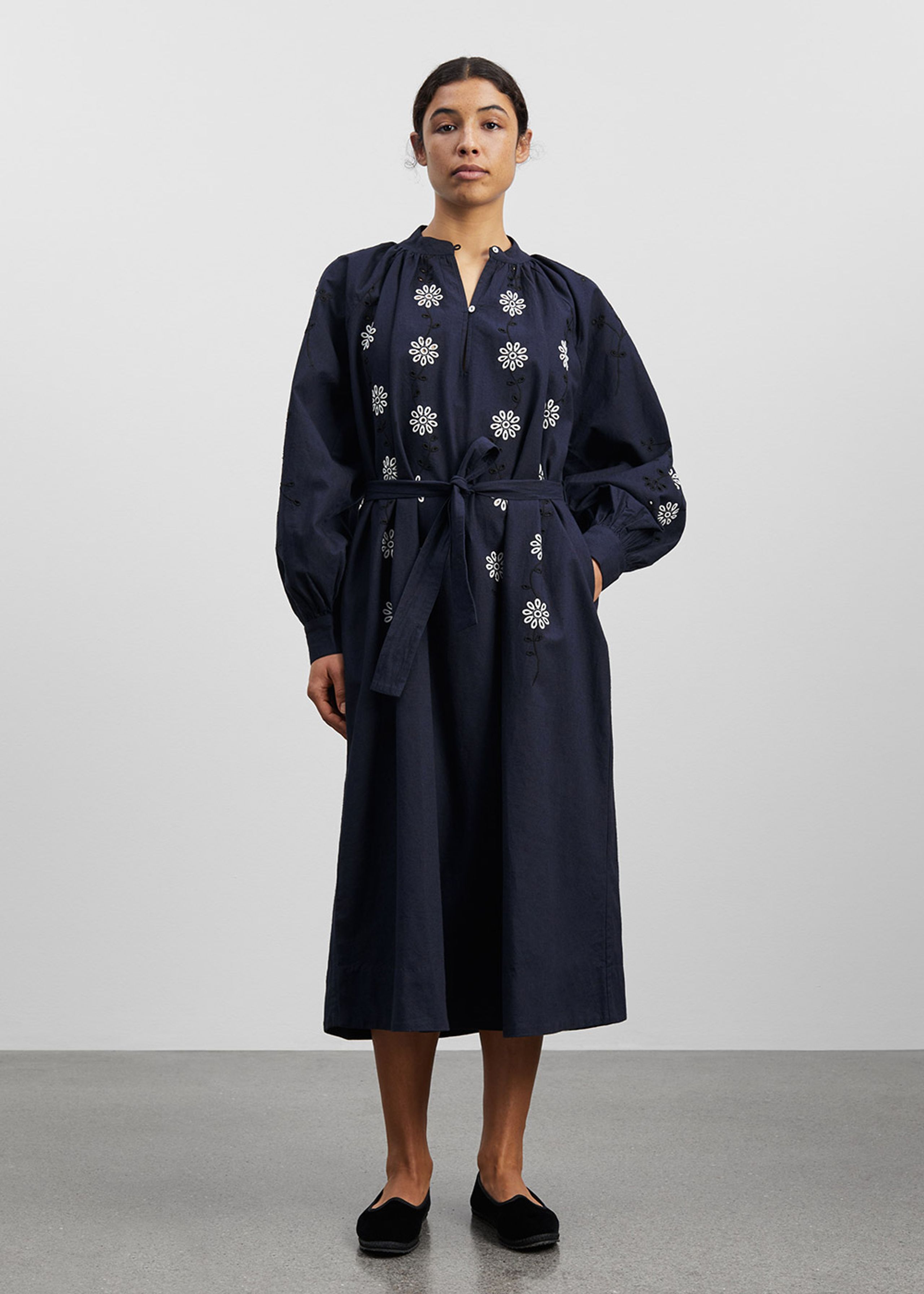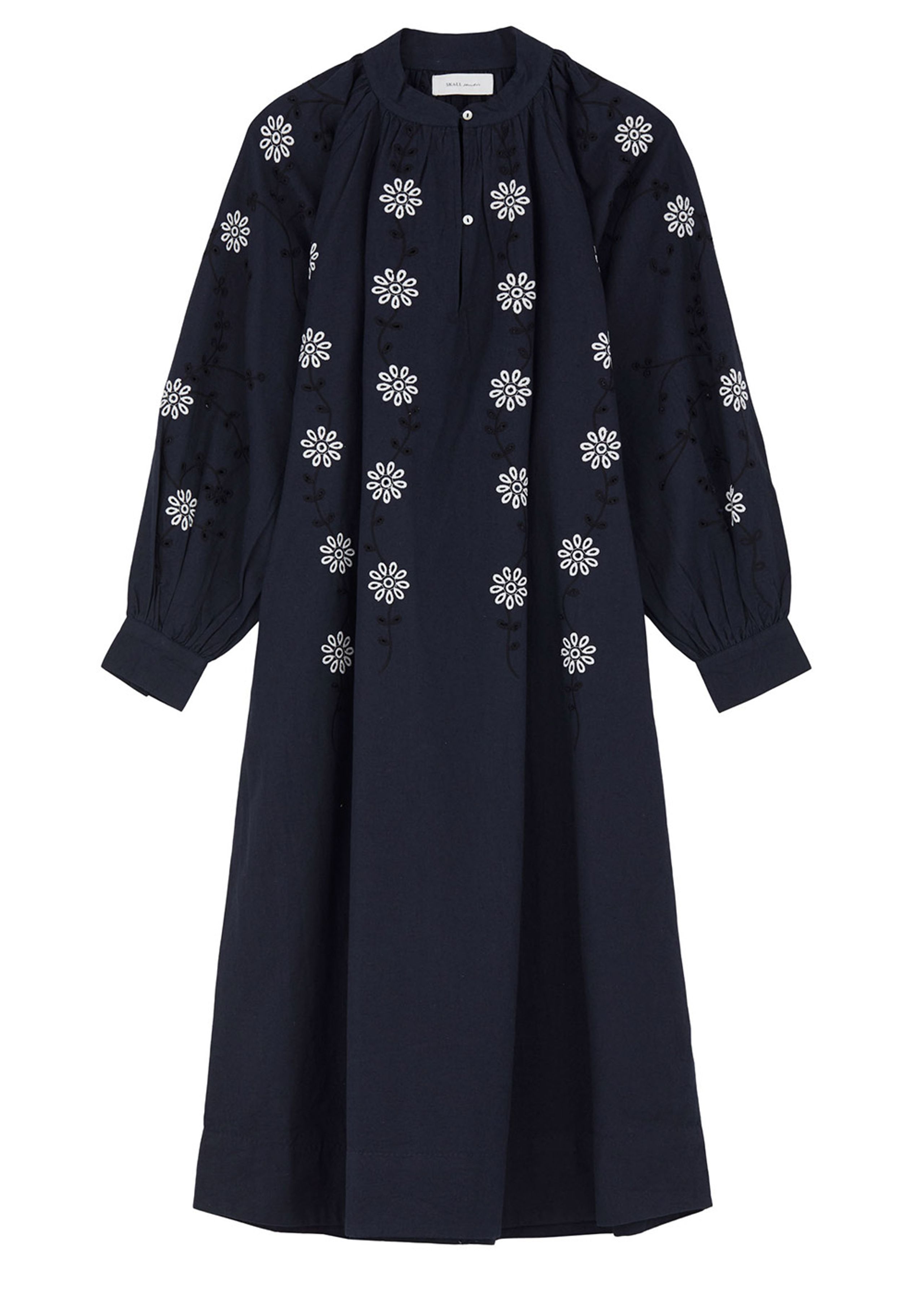 Beautiful and exclusive dress from Skall Studio. The dress goes below the knee and is adorned with the finest floral embroidery. Skall Studio is at the forefront of efforts to create a more sustainable fashion industry, and this dress is no exception.