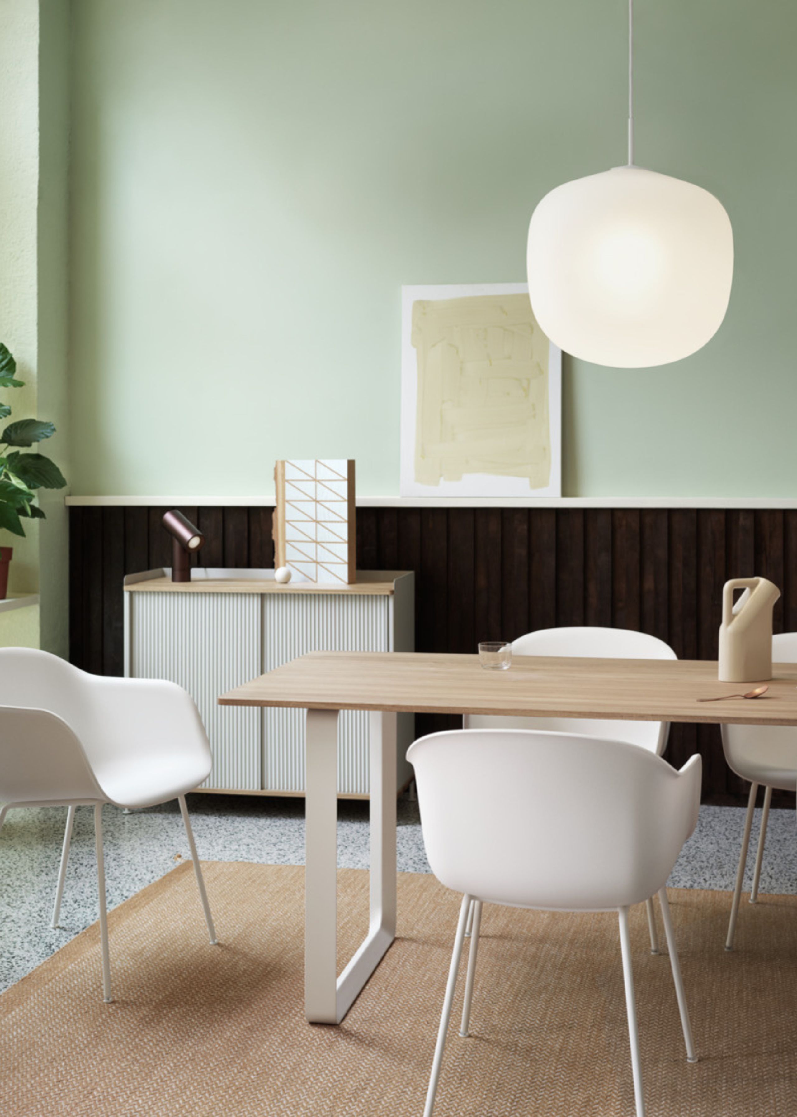 Designen av 70/70 Table ger ett enkelt uttryck, kombinerat med lätta och eleganta detaljer. Detaljerna på 70/70 Table ger också karaktär åt designen.